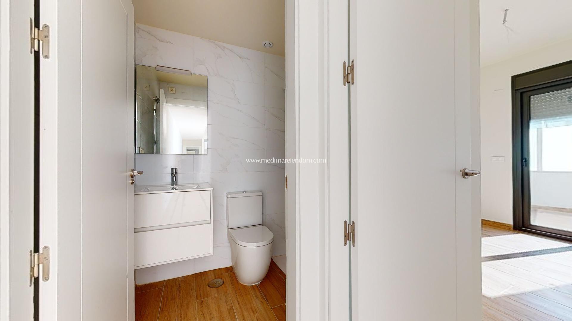 ERDGESCHOSSIGES QUAD MIT PRIVATEM POOL IN SAN PEDRO PINATAR Der neu gebaute, originelle Quad bietet Ihnen ein helles Wohn-Esszimmer mit einer spektakulären Schiebetür vor Ihrem privaten Pool, die Ihnen tagsüber eine schöne Aussicht und nachts einen entspannenden Blick bietet. Sie werden auch eine moderne und funktionelle Küche mit "Silestone" Typ Arbeitsplatte, auch weiß. Sie verfügt über einen Backofen, eine Dunstabzugshaube und ein Cerankochfeld. Das Hauptschlafzimmer hat Zugang zum Garten durch eine Schiebetür, die es sehr hell macht. Es ist mit einem praktischen Kleiderschrank ausgestattet und verfügt über ein eigenes Bad. Das zweite Schlafzimmer hat die gleichen Eigenschaften wie das Hauptschlafzimmer, mit der Ausnahme, dass das Bad zugänglich ist, ohne den Raum zu durchqueren, was es ermöglicht, es als Gästebad zu nutzen. Die Immobilie ist mit einer Vorinstallation für eine Kanal-Klimaanlage ausgestattet. Im Außenbereich bietet das Haus einen 83 m2 großen Garten mit einem privaten Swimmingpool von ca. 6x2 Metern, so dass Sie das beneidenswerte Klima der Küste genießen können. Gegen einen Aufpreis können Sie auch eine private Sonnenterrasse von 47 m2 haben, die Ihnen einen zusätzlichen Platz im Freien bietet. Das Anwesen befindet sich in einer der besten Wohngegenden von San Pedro del Pinatar, umgeben von Häusern von maximal zwei Höhen, umgeben von Dienstleistungen, große Supermärkte und nur 10 Minuten zu Fuß vom Zentrum von San Pedro, mit seinen herrlichen Bars, Restaurants und Geschäfte. Darüber hinaus finden Sie nur 15 Minuten zu Fuß entfernt das wahre Paradies von San Pedro: den Naturpark Salinas y Arenales, ein geschütztes Gebiet, in dem Sie kilometerlange Wander- und Radwege und natürlich seine wunderschönen Strände genießen können, sowohl am Mittelmeer als auch am Mar Menor.