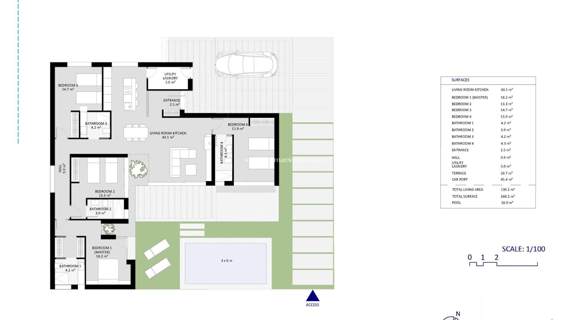 NEU GEBAUTE VILLEN IN ALTAONA GOLF RESORT, MURCIA Neue Entwicklung von schönen Villen in Altaona Golf Resort, Murcia. Das Hotel liegt in einer privilegierten Umgebung, wo wir ruhig leben können, in Kontakt mit der Natur und die Berge, erhalten wir Lebensqualität, frische Luft und Freiräume. Die schöne 1 Ebene Villa verfügt über 4 Schlafzimmer, 4 Bäder, offene Küche mit Wohnbereich, private Gärten mit dem Pool und Parkplatz. Exklusive Neubau Wohnanlage in Altaona Golf nur 15 Minuten Fahrt vom Zentrum von Murcia Stadt und 20 Minuten von den Stränden können Sie die Ruhe und Sicherheit durch die 18-Loch-Golfplatz und die Bequemlichkeit des Lebens in der Nähe von allen Annehmlichkeiten angeboten genießen. Murcia Corvera Flughafen ist nur 15 Minuten mit dem Auto entfernt.