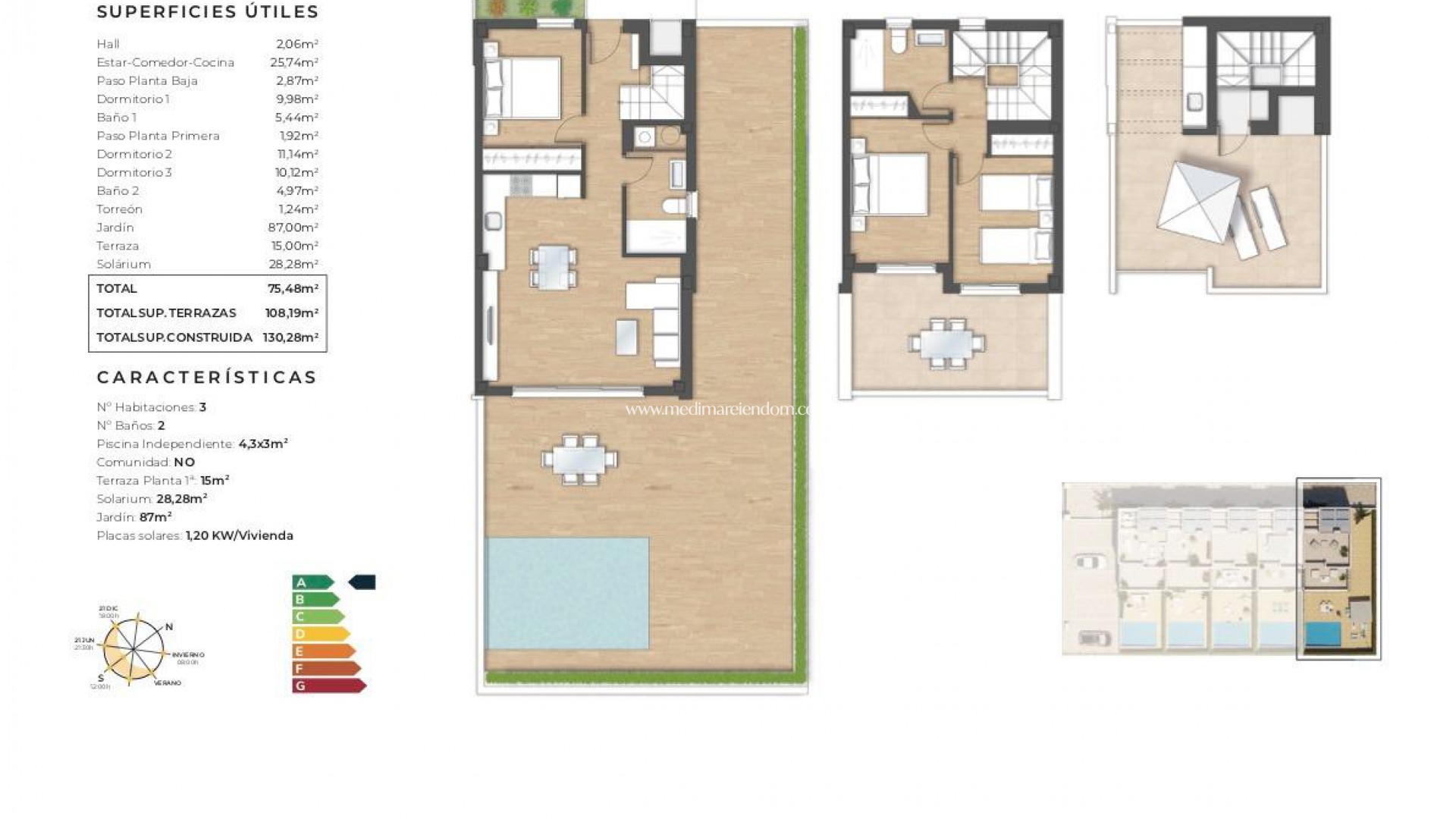 NEU GEBAUTE DOPPELHAUSHÄLFTEN IN TORREVIEJA Neubau Wohnanlage von 5 schönen Eigenschaften mit privaten Swimmingpools in Torrevieja. Doppelhaushälfte Villa hat 3 Schlafzimmer, 2 Bäder, offene Küche mit Wohnzimmer, Einbauschränke, Terrasse, private Solarium mit Grillplatz, Garten mit dem Pool und comunal Parkplatz. Eigenschaften mit hochwertigen Materialien und Oberflächen gebaut. Die unglaubliche Lage, nur 5 Minuten vom Meer entfernt, und die Nähe zu den wichtigsten Einkaufs- und Freizeitzentren von Torrevieja sowie zu den Golfplätzen, machen es zu einem einzigartigen und exklusiven Ort zum Leben. Torrevieja ist eine spanische Stadt in der Provinz Alicante, an der Costa Blanca. Sie ist bekannt für ihr typisch mediterranes Klima und ihre Küstenlinie. Entlang der Sandstrände gibt es Strandpromenaden mit Ferienanlagen. Das kleine Meeres- und Salzmuseum beherbergt Ausstellungen über die Fischerei- und Salzgeschichte der Stadt. Im Landesinneren befindet sich der Naturpark Lagunas de La Mata-Torrevieja mit Wanderwegen und zwei salzhaltigen Lagunen, von denen eine rosa und die andere grün ist. Der Flughafen Alicante ist 40 Minuten und der Flughafen Murcia etwa 1 Stunde entfernt.