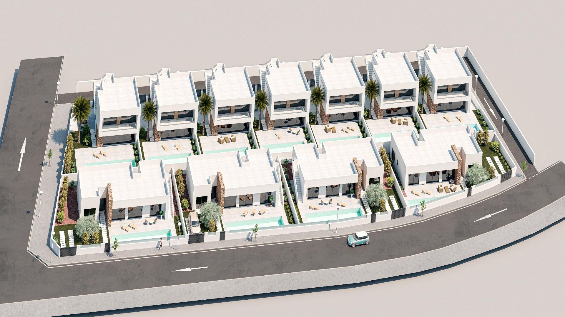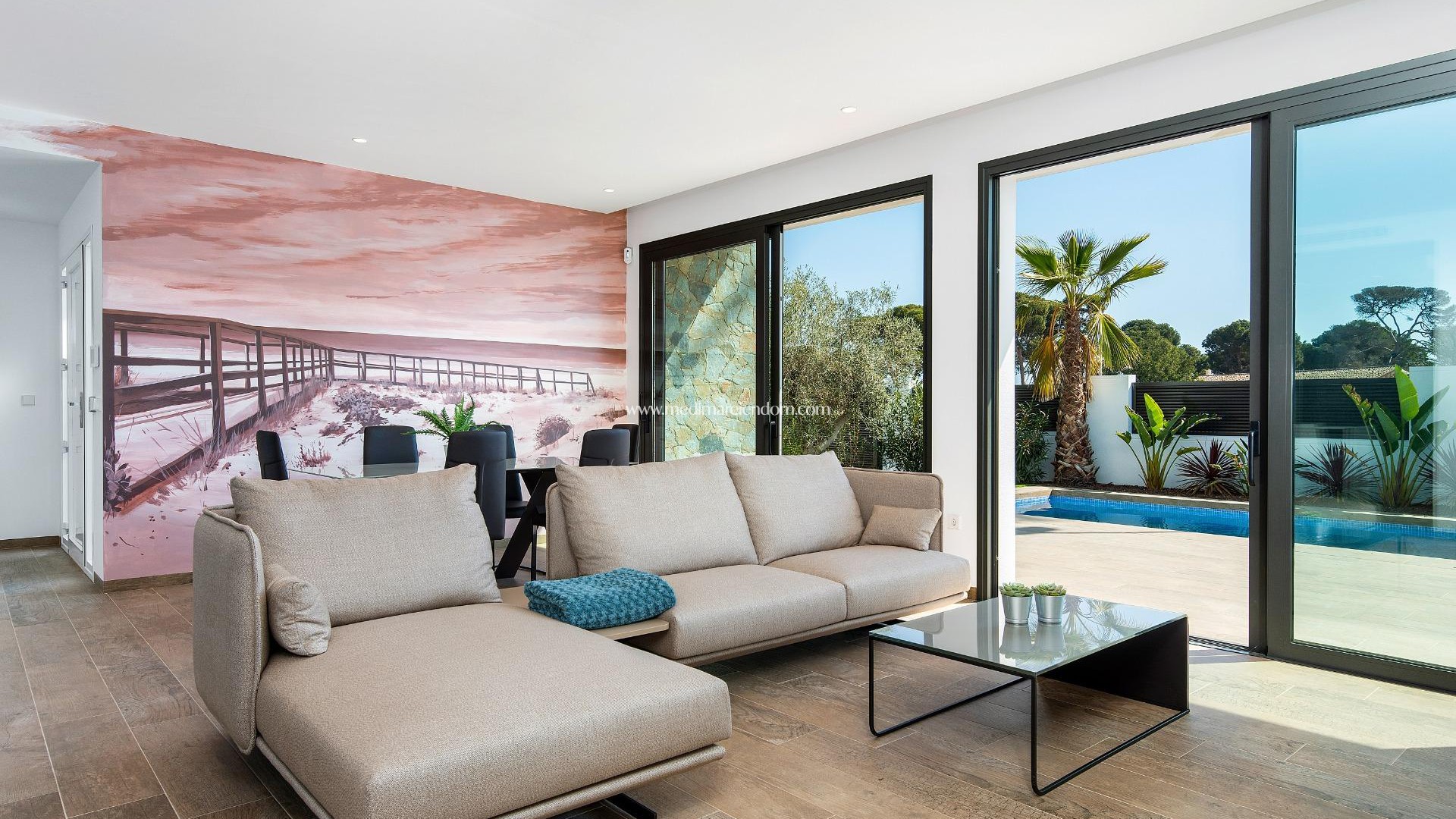 NEU GEBAUTE EINSTÖCKIGE VILLA IN CABO DE PALOS Schöne einstöckige Villa mit 3 Schlafzimmern und 2 Bädern, 250 Meter vom Strand entfernt. Die Villa verfügt über ein helles Wohnzimmer mit moderner offener Küche und Schiebefenstern, die mit der vorderen Terrasse und dem privaten Swimmingpool verbunden sind. Alle Schlafzimmer haben Einbauschränke. Es gibt auch eine große Sonnenterrasse, wo Sie das ganze Jahr über sonnenbaden können, einen privaten Parkplatz auf dem Grundstück und den Garten. Die Villen liegen nur wenige Gehminuten vom Yachthafen Cabo de Palos, der Promenade und den Restaurants entfernt, in denen Sie die beste mediterrane Küche genießen können. Es ist auch nur 12 km von dem renommierten Hotel Campo de Golf La Manga Club Resort. Die Flughäfen von Corvera (Murcia) und Alicante sind 56 bzw. 126 km entfernt.