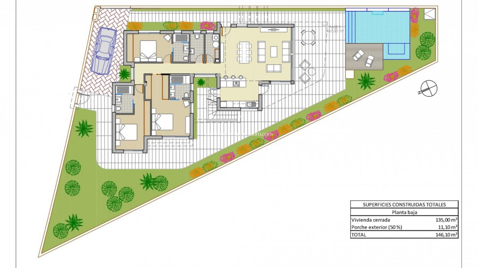 NEUBAU-VILLEN IN PILAR DE LA HORADADA AM GOLFPLATZ New Build ein exklusives und luxuriöses Projekt von Villen in Lo Romero Golf, Pilar de la Horadada. Exklusive New Build Eckvilla ist der perfekte Ort für Sie, um Ihr Leben in Spanien zu genießen. Nach Südosten ausgerichtet und mit eigenem Pool und Parkplatz. Die Villa verfügt über 3 Schlafzimmer und 3 Bäder, sowie Einbauschränke. Es ist in einer Entfernung von 100 m vom Golfplatz und nur 6 km zum Strand. Die Terrasse hat 75 m2 und der Preis beinhaltet alles außer den Möbeln, so dass Sie alles auf Ihre eigene Weise dekorieren können. Pilar de la Horadada ist ein typisch spanisches Dorf im südlichsten Teil der Costa Blanca. Die große Hauptstraße hat Supermärkte, viele Geschäfte, Restaurants und Bars und einige schöne Plätze. Die schönen Strände von Torre de la Horadada und Mil Palmeras mit ihrer feinen Sandpromenade sind nur 5 Minuten entfernt. Lo Romero Golf ist der perfekte Platz für passionierte Golfer und die Insel des Golfs ist ein idealer Platz für Golfer aller Spielstärken. Die Flughäfen von Corvera (Murcia) und Alicante sind 40 bzw. 55 Minuten entfernt.