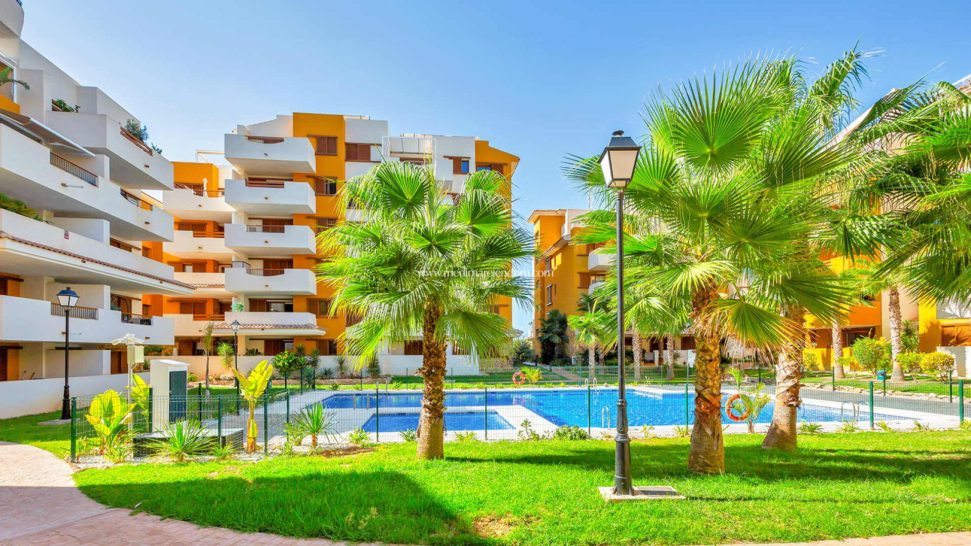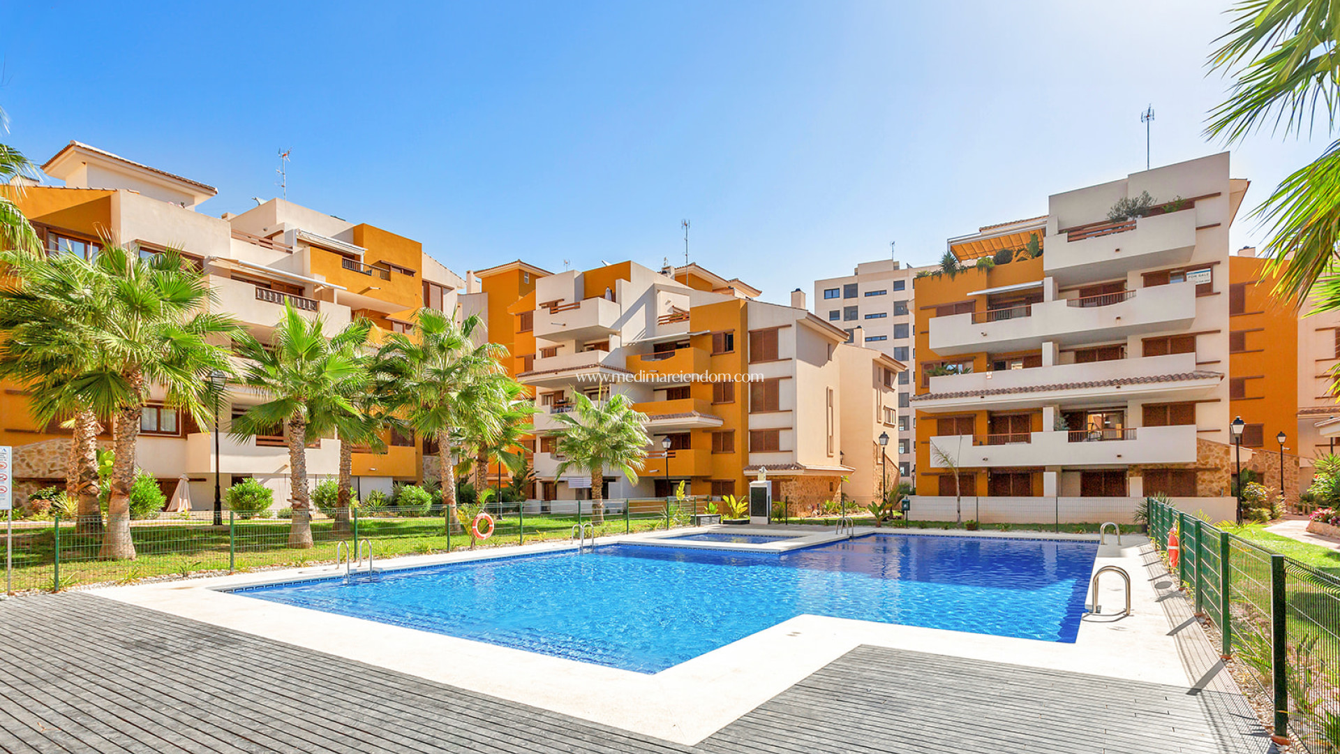 Geräumige Wohnung in La Recoleta, Punta Prima. Die Urbanisation im mediterranen Stil zeichnet sich durch schöne und großzügige Gemeinschaftsgartenbereiche aus. Sie verfügt über 24-Stunden-Sicherheits- und Videoüberwachung. Die Wohnanlage besteht aus mehreren Wohnblöcken mit einer maximalen Höhe von 5 Stockwerken. Sie ist aufgeteilt in 3 Schlafzimmer, 2 Badezimmer, eines davon en suite, Küche, Wohnzimmer und Terrasse von 14 m2. Es umfasst auch eine Tiefgarage und einen Abstellraum. Die Wohnanlage verfügt über 3 Gemeinschaftspools für Kinder und Erwachsene. Punta Prima ist eine Urbanisation am Meer, wo Sie Wassersport, Freizeit und Strände genießen können. Sie liegt in der Nähe aller Annehmlichkeiten wie dem Einkaufszentrum Zenia Boulevard und Sportzentren. Die Strände Punta Prima und Playa Flamenca, Cala Piteras und andere mit der Blauen Flagge ausgezeichnete Strände von Orihuela Costa und Torrevieja sind zu Fuß erreichbar. Wenige Minuten von den Golfplätzen Las Colinas, Villamartin, Campoamor und Las Ramblas entfernt. Gute Anbindung an die Mittelmeerautobahn AP-7 und N-332.