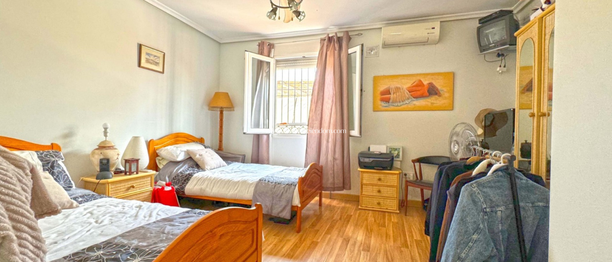 Im Obergeschoss befinden sich 2 Schlafzimmer, jedes mit eigenem Bad, die zusätzlichen privaten Raum bieten. Von hier aus erreichen Sie die große Terrasse, die um die Ecke des Hauses verläuft, mit Blick auf den Pool und auch den Weg hinauf zum Solarium für schöne Ausblicke.