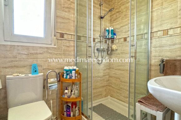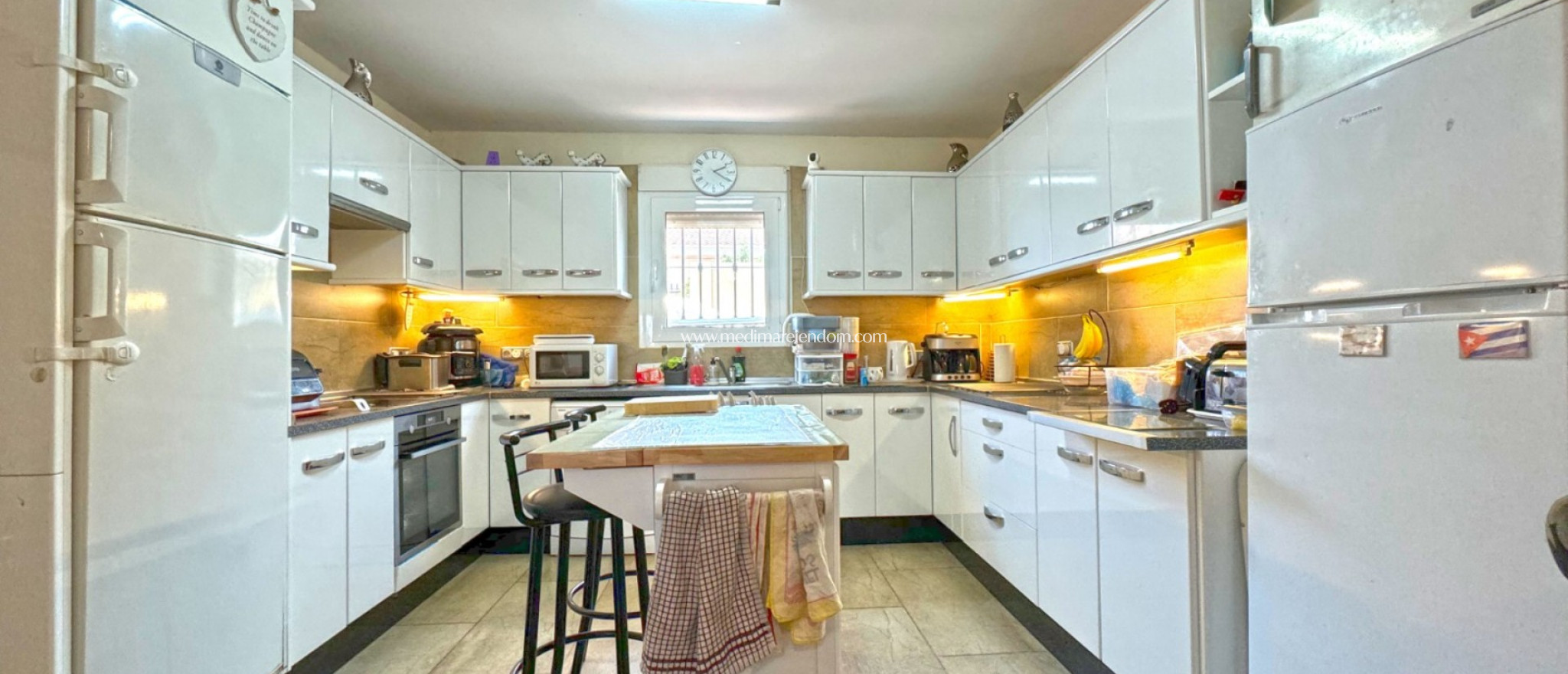 Das Erdgeschoss verfügt über 2 Schlafzimmer, jedes mit eigenem Bad, ein zusätzliches Badezimmer, eine frische und moderne Küche (4-5 Jahre alt) mit Soft-Close-Schränken und ein Wohnzimmer mit Kamin und Blick auf den Poolbereich und die Terrasse.