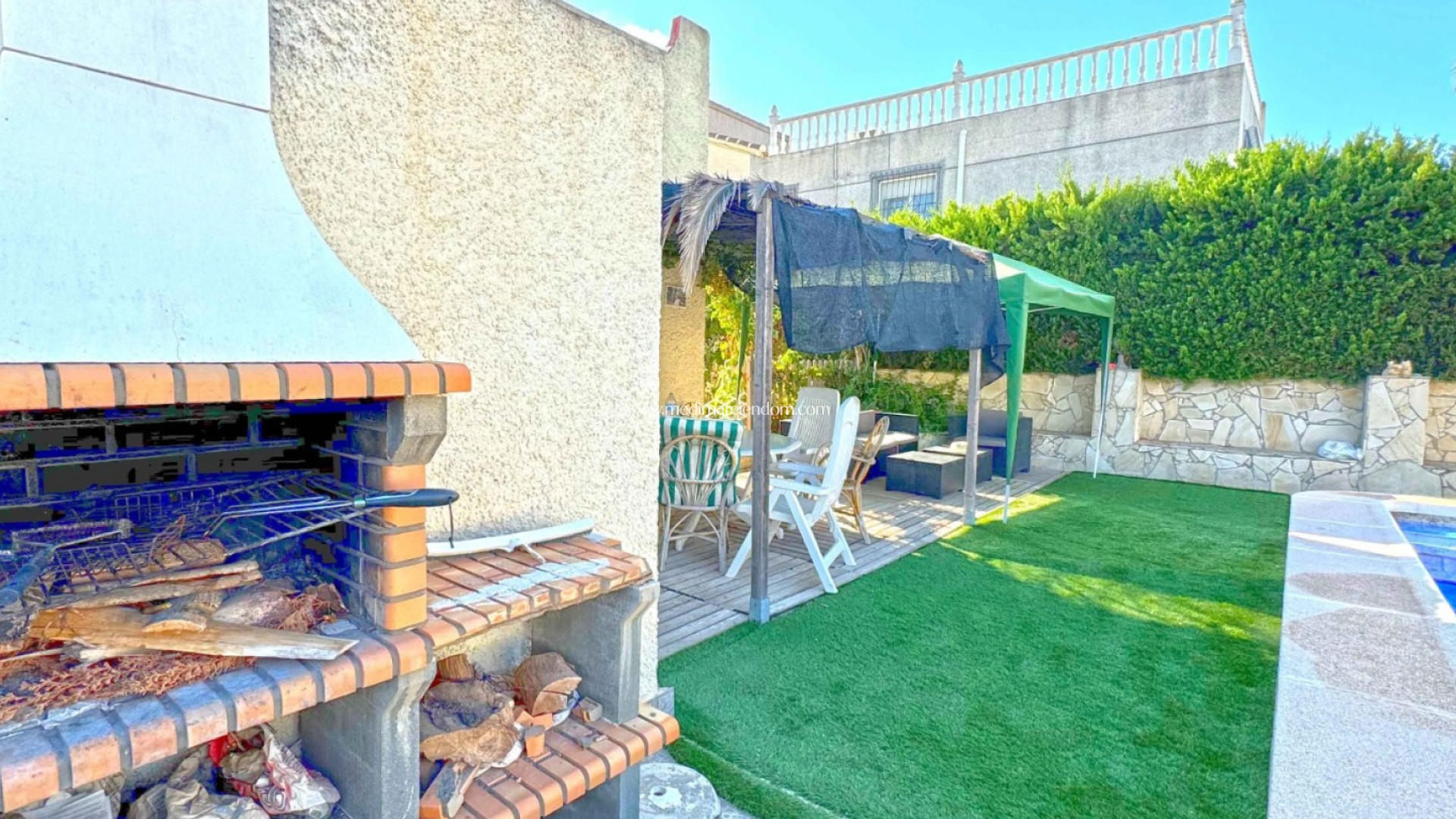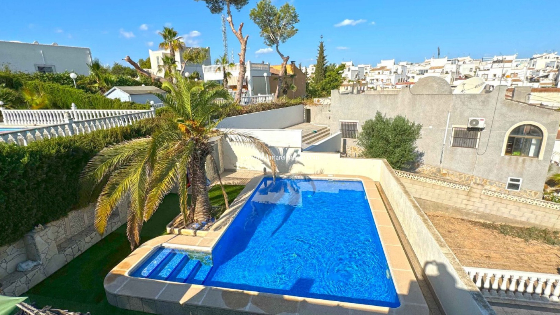 Willkommen in dieser reizvollen Doppelhaushälfte, gelegen im begehrten Gebiet von Los Balcones, Torrevieja. Diese Immobilie bietet eine einzigartige Mischung aus Komfort, Privatsphäre und Potenzial, was sie zum perfekten Zuhause für dauerhaftes Wohnen oder als ruhigen Ferienrückzugsort macht. Hauptmerkmale: Geräumiges Wohnen: Die Villa verfügt über 2 gemütliche Schlafzimmer, ein komplettes Badezimmer und eine zusätzliche Toilette, was Ihnen und Ihren Gästen Komfort garantiert.Großzügiger Außenbereich: Der große Garten ist eine wahre Oase, mit einem wunderschönen Feigenbaum und üppigen Weinreben – perfekt, um den mediterranen Lebensstil zu genießen. Der private Pool mit neuer Ausrüstung lädt an warmen Sommertagen zum Abkühlen ein, und die Außendusche verleiht Ihrem Outdoor-Erlebnis einen Hauch von Luxus.Vielseitiger Keller & Garage: Der großzügige Keller bietet reichlich Platz für Lagerung, eine Werkstatt oder sogar die Möglichkeit, weitere Schlafzimmer hinzuzufügen. Die Garage bietet bequem Platz für ein Fahrzeug oder kann für zusätzliche Lagerung genutzt werden. Alternativ bietet dieser Bereich viele Optionen, um den Wohnraum zu erweitern, falls Sie mehr Platz benötigen.Unendliches Potenzial: Mit der Möglichkeit, eine weitere Etage auf dem Solarium hinzuzufügen, können Sie dieses Haus weiter an Ihre Bedürfnisse anpassen – sei es durch die Schaffung weiterer Schlafzimmer, einer Dachlounge oder einfach durch die Erweiterung des Wohnbereichs.Bequeme Annehmlichkeiten: Die Immobilie umfasst auch einen praktischen Abstellraum und einen privaten Parkplatz, entweder in der Garage oder auf dem Grundstück. Die niedrige jährliche IBI von nur 240 € ist ein weiteres attraktives Merkmal, das diese Immobilie zu einer erschwinglichen Wahl macht. Diese Villa bietet eine perfekte Kombination aus Ruhe, Privatsphäre und Komfort, alles in einer lebendigen Gemeinschaft nahe Geschäften, Restaurants und den atemberaubenden Stränden von Torrevieja. Verpassen Sie nicht die Gelegenheit, ein Stück Paradies in Los Balcones zu besitzen – kontaktieren Sie uns noch heute, um eine Besichtigung zu arrangieren und das volle Potenzial dieses charmanten Hauses zu entdecken!