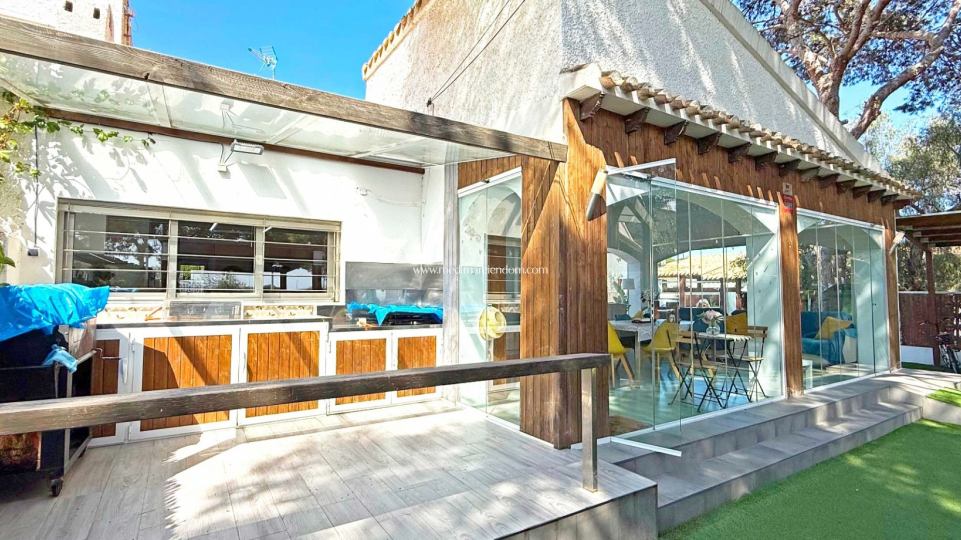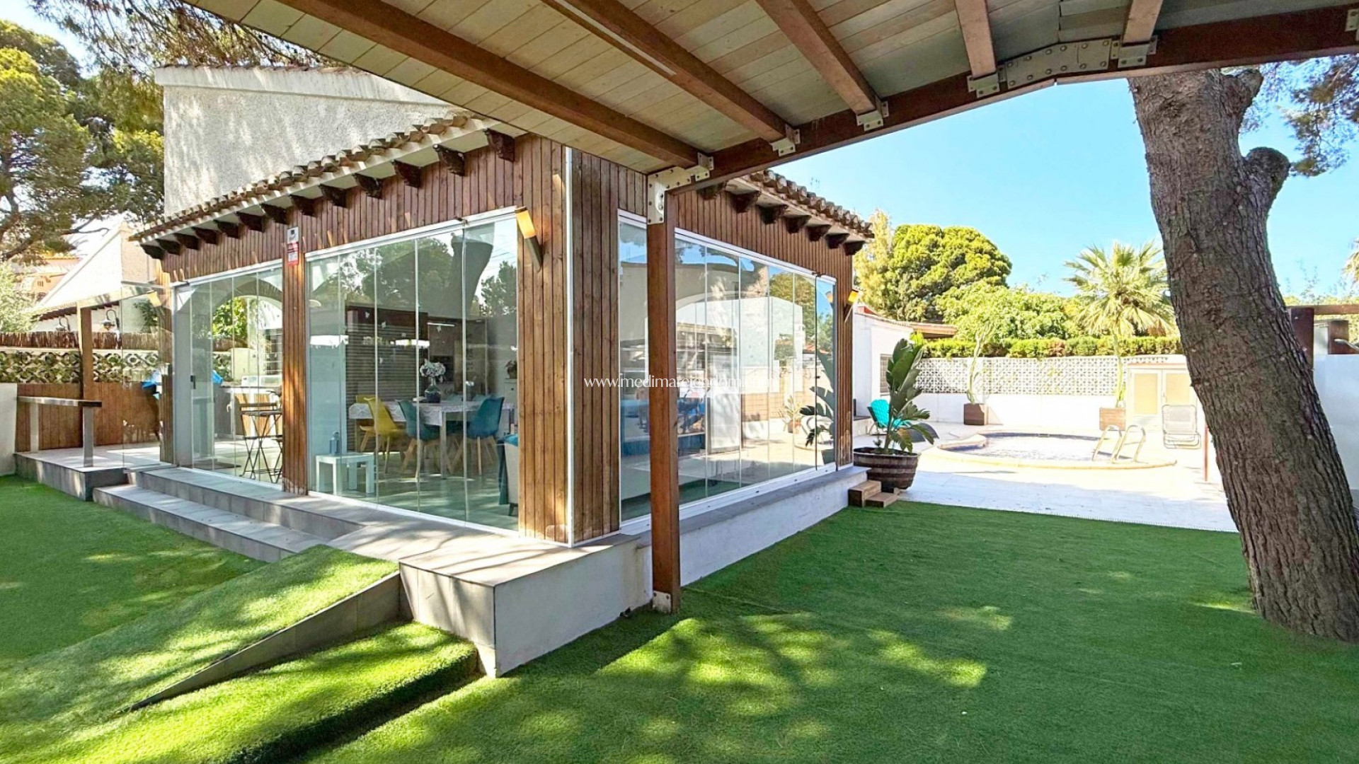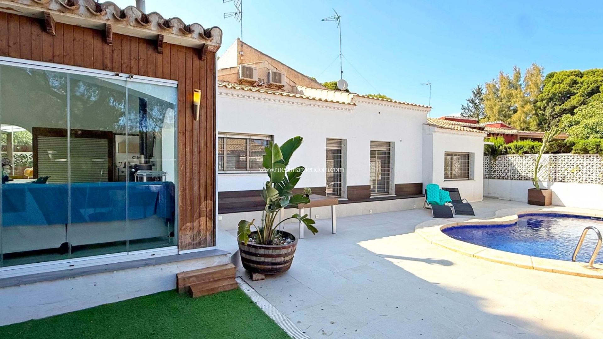 Diese südlich ausgerichtete Villa befindet sich in bester Lage von Punta Prima auf einem großzügigen Grundstück mit privatem Pool, Stellplatz und einem großen Wintergarten mit Blick auf den Pool – ideal für jede Jahreszeit.