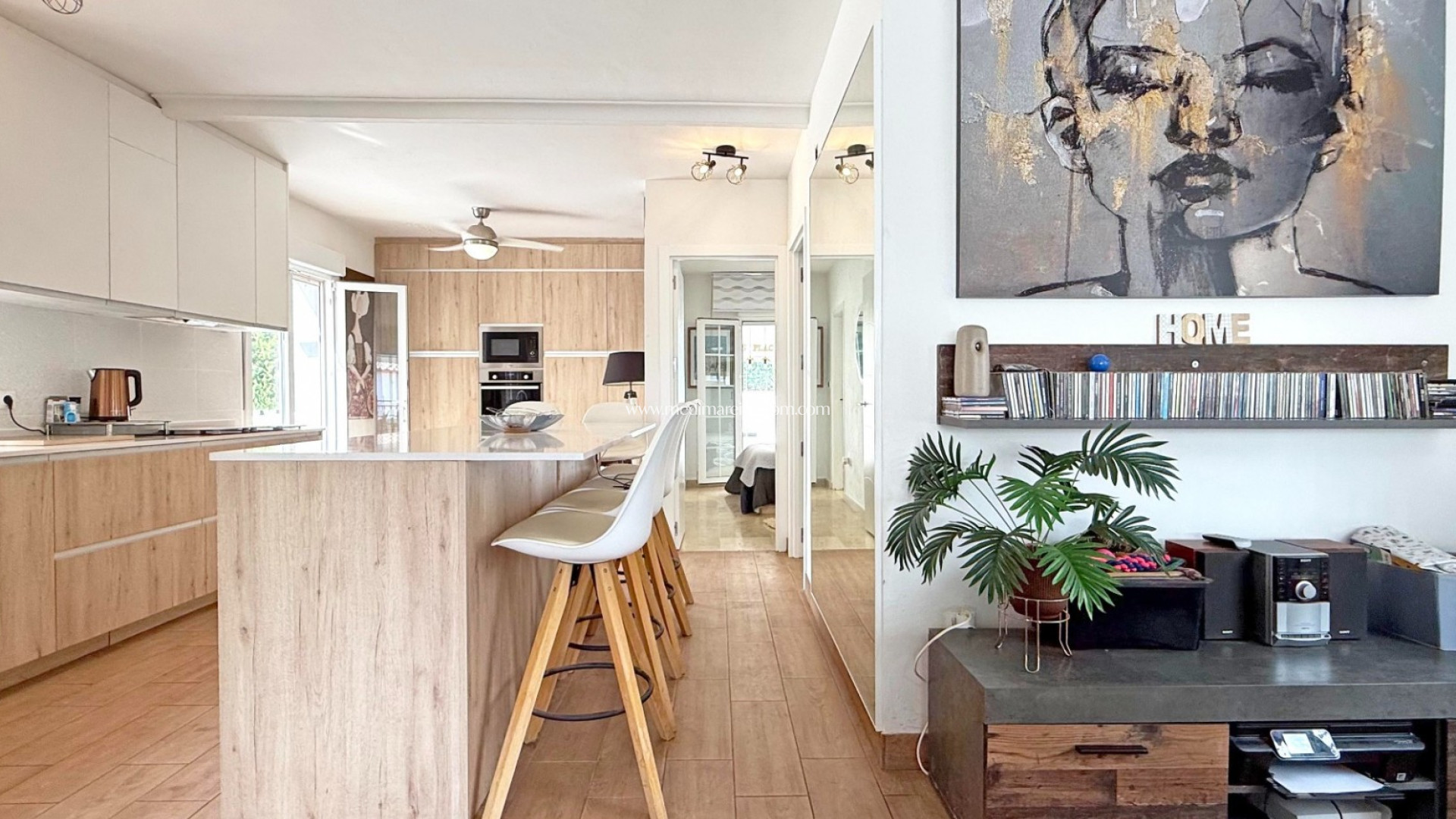 Diese gepflegte Villa wurde geschmackvoll zu einem 2/3-Schlafzimmer-Haus umgebaut und verbindet Komfort mit Stil. Sie verfügt über einen privaten Pool, drei Badezimmer (davon zwei en-suite), eine großzügige Wohnküche sowie ein großes Wohnzimmer mit Zugang zu einem Balkon mit Blick auf den Pool. Der Balkon kann mit Glasvorhängen geschlossen werden und ist somit das ganze Jahr nutzbar. Das Gästezimmer hat einen eigenen Patio, ebenfalls mit Glasvorhängen ausgestattet, während das Hauptschlafzimmer über ein großes Solarium mit herrlichem Meerblick verfügt. Weitere Extras sind Klimaanlage im gesamten Haus, optionale Zentralheizung, zwei große Abstellräume sowie die ruhige und private Lage in Villamartin – nur wenige Gehminuten vom berühmten Villamartin-Platz und dem Golfplatz entfernt.