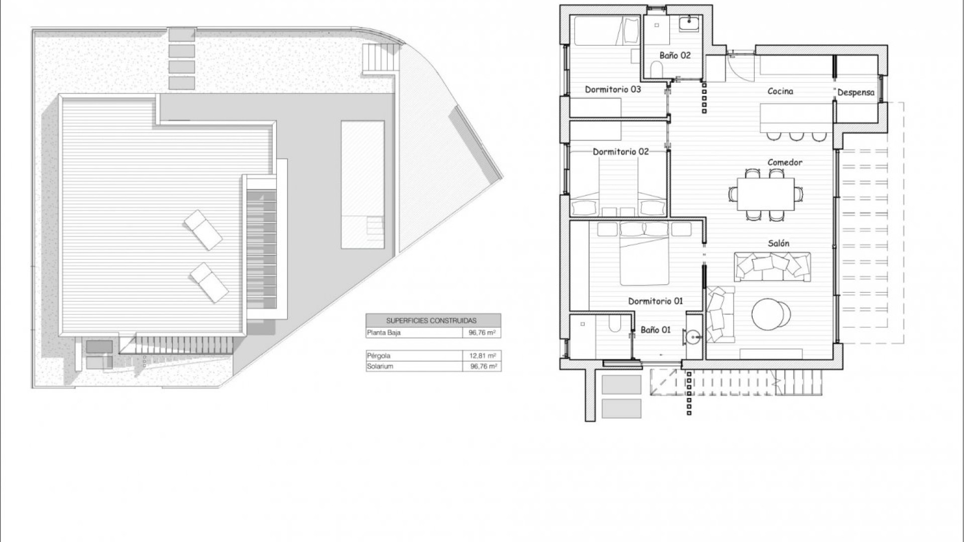 NYBYGGDE VILLAER Nybygget bolig med 5 frittliggende villaer (3 forskjellige typer A, B og C) som ligger i San Miguel de Salinas. Moderne designvillaer laget for å nyte den spanske solen. Villaene har 3 soverom, 2 bad, åpen kjøkkenløsning med romslig stue, garderober, terrasse. Hver villa har en selvstendig tomt, parkeringsplass og svømmebasseng. Et alternativ for et solarium mot en ekstra kostnad. San Miguel de Salinas ligger nær golfbanene Las Colinas og Campoamor, og tilbyr eksepsjonell utsikt over lagunene Torrevieja og La Mata. San Miguel de Salinas er en kommune i Valencia i Spania. Ligger sør i provinsen Alicante, i regionen Vega Baja del Segura nær Murcia-regionen. Alicante flyplass ligger 35 minutters kjøring unna, og Murcias Corvera flyplass ligger ca. 1 times kjøring unna.