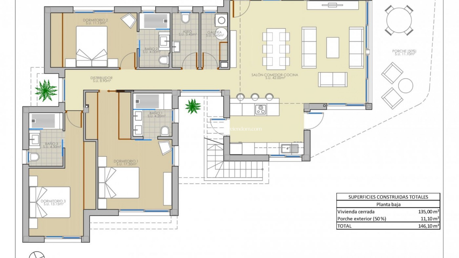 NYBYGGDE VILLAER I PILAR DE LA HORADADA PÅ GOLFBASEN Nytt Bygg et eksklusivt og luksuriøst prosjekt av villaer på Lo Romero golf, Pilar de la Horadada. Eksklusiv nybygg hjørnevilla er det perfekte stedet for deg å nyte livet ditt i Spania. Sørøstvendt og med eget basseng og parkering. Villaen inneholder 3 soverom og 3 bad, i tillegg til å ha garderobeskap. Det er i en avstand på 100 m fra golfbanen og kun 6 km til stranden. Terrassen er på 75 m2 og prisen inkluderer alt unntatt møblene, slik at du kan innrede alt på din egen måte. Pilar de la Horadada er en typisk spansk landsby i den sørligste delen av Costa Blanca. Den store hovedgaten har supermarkeder, mange butikker, restauranter og barer og noen flotte torg. De vakre strendene i Torre de la Horadada og Mil Palmeras med fin sandpromenade ligger bare 5 minutter unna. Lo Romero Golf er den perfekte banen for golfere som brenner for golf, og Golføya er en ideell bane for golfere på alle nivåer. Flyplassene Corvera (Murcia) og Alicante ligger henholdsvis 40 og 55 minutter unna.