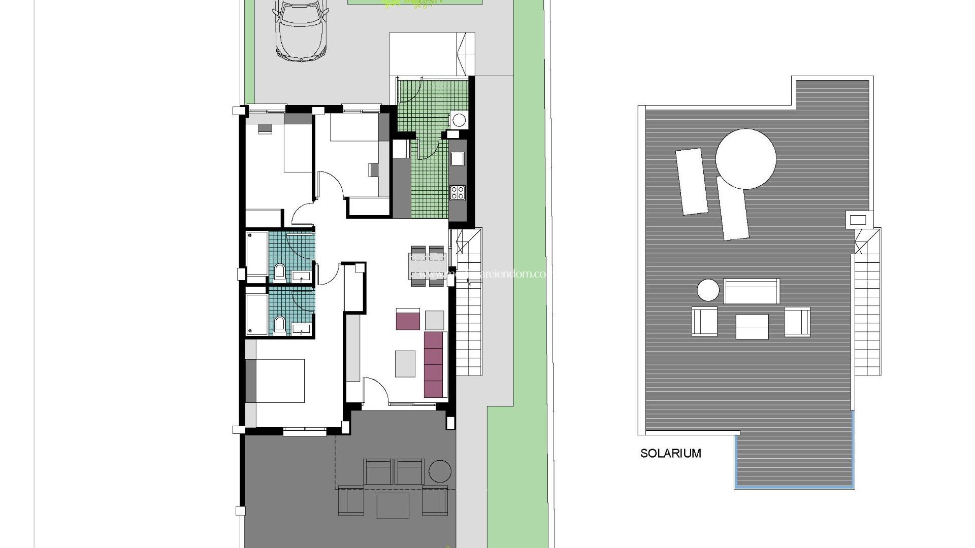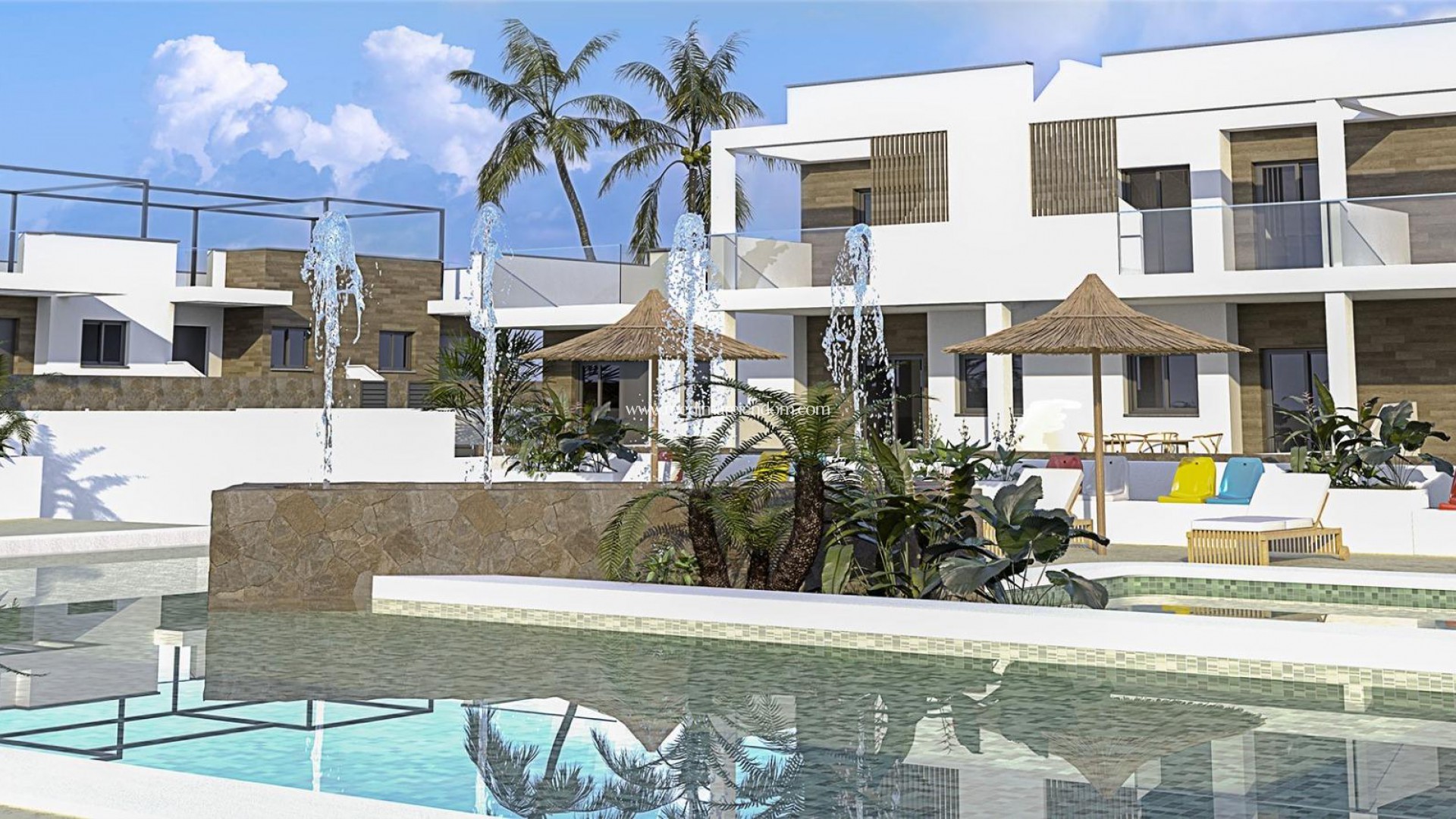 NYBYGG AV TOMANNSBOLIGER I MIL PALMERAS Nybygget boligkompleks med moderne leiligheter, bungalower og tomannsboliger i privilegerte omgivelser med førsteklasses kvaliteter og havutsikt, med store hageanlegg, lekeplass, parkeringskjeller og felles svømmebasseng for voksne og barn. Moderne tomannsboliger har 3 soverom, 2 bad, åpen kjøkkenløsning med stue, garderober, kjeller, terrasse, privat solarium, hage og parkeringsplass. Mil Palmeras ligger mellom Campoamor og Torre de la Horadada, alle fasiliteter du trenger som skoler, restauranter, idrettsanlegg etc som er åpne hele året. Landsbyen har et lite torg og en flott 'restaurantgate' som er fullpakket med internasjonale restauranter og Lo Monte naturpark som er et spesielt reservat for fugler. Naturparken Rio Seco ligger også her, for de som elsker natur og fotturer. Lo Romero 18-hulls golfbane ligger bare en kort kjøretur fra byen. Flyplassene i Corvera (Murcia) og Alicante ligger henholdsvis 40 og 55 minutter unna.