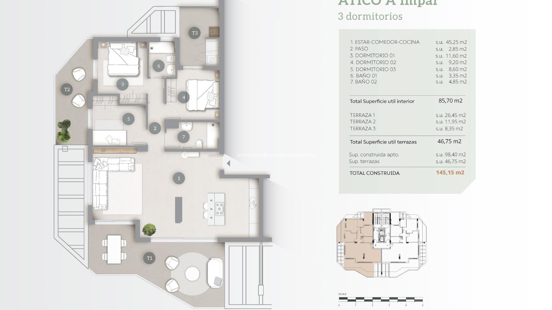 NYBYGDE LEILIGHETER I CALPE Nybygget boligkompleks med leiligheter med 2 og 3 soverom og store terrasser i Calpe. To tårn på 12 etasjer med vakre leiligheter med utsikt over havet og saltsjøen i Calpe. Et lyst hus i harmoni med naturen, med åpen kjøkkenløsning med stue, garderober, romslige terrasser og havutsikt. Hver leilighet har underjordisk parkeringsplass. Stort fellesområde med 2 store svømmebassenger, ett av dem med inngang fra stranden, solsenger med kunstgress, lekeplass, paddle-tennisbane, sykkelparkering, hageområder. Calpe har et privilegert mikroklima, og boligen ligger bare 200 meter fra El Arenal-stranden. Et ideelt sted å nyte freden, stillheten og det blå havet. Sammen med de du er glad i, kan du prøve alt det den har å by på: undervannsaktiviteter der du kan oppdage Middelhavets flora og fauna og utøve alle typer vannsport på internasjonale skoler. Calpe, en av byene i La Marina Alta, ligger på nordkysten av Alicante-provinsen, omgitt av byene Altea, Benidorm, Teulada-Moraira og Benissa. Calpe har en herlig blanding av gammel valenciansk kultur og moderne turistfasiliteter. Calpe er et flott utgangspunkt for å utforske lokalområdet eller nyte de mange lokale strendene. Calpe alene har tre av de vakreste sandstrendene på kysten. Calpe har også to seilklubber: Real Club Náutico de Calpe og Club Náutico de Puerto Blanco. Fiskerlandsbyen Calpe er nå forvandlet til en turistmagnet og har en ideell beliggenhet, lett tilgjengelig via motorvei A7 og N332 som går fra Valencia til Alicante. Det tar ca. 1 time å kjøre til flyplassen i Alicante og 1,5 time til Valencias flyplass.