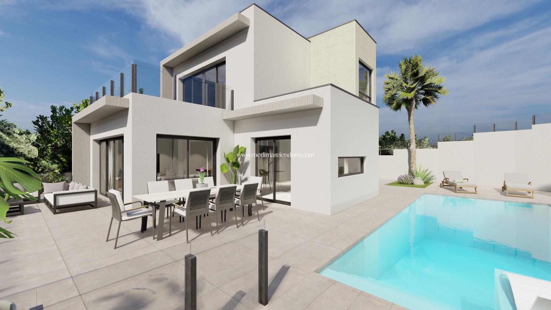 NYBYGD VILLA I ROJALES Nybygget moderne villa i La Marquesa Golf, Rojales. Villa med store innvendige rom, bestående av kjøkken, stue og spisestue, alt i et stort åpent område der utformingen av rommene råder, 3 soverom, 3 komplette bad, i tillegg er det garasje i en kjeller for 2 biler og 2 utendørsterrasser i 1. etasje med utsikt over golfbanen. Eiendommen er utviklet i 2 etasjer med en utvidelse på 145m2 boareal pluss 95m2 garasjeplass. Villaen bygger en tomt på 450m2 hvorav 337m2 er bestemt til hager, utendørsterrasser og svømmebassenget. Alt med førsteklasses materialer og de beste finishene. Villaen ligger ved siden av La Marquesa golfbane i et rolig område og bare 10 minutter fra kysten. Rojales er en tradisjonell jordbruksby som har blitt en av favorittdestinasjonene i det indre av Vega Baja, takket være den strategiske beliggenheten nær N-332 og AP-7. De gode tilkomstmulighetene gjør at du kan nå Alicante flyplass på 20 minutter og nyte strendene i Guardamar, La Mata eller Torrevieja på 15 minutter. Rojales har et rikt og variert gastronomi- og fritidstilbud, og har den prestisjetunge golfbanen La Marquesa Golf. La Marquesa Golf er en av de mest historiske banene på Costa Blanca, med 18 hull og et like spesielt hull som det 17. hullet på Sawgrass. Tradisjon, kvalitet og erfaring forenes for å tilby golfere som besøker oss en unik opplevelse, full av historie der.