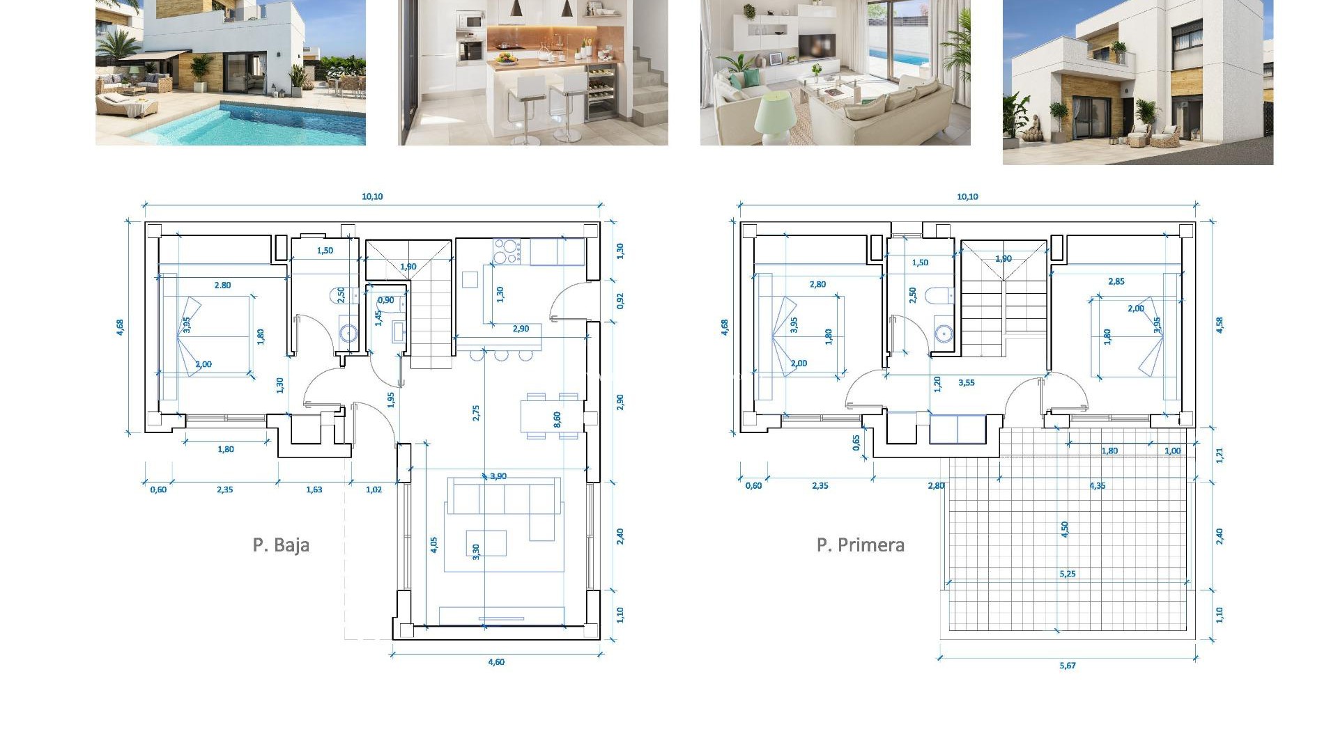 NYBYGGEDE VILLAER I ROJALES Nybygg 6 moderne villaer i Rojales. Villaene er bygget over 2 etasjer, har 3 soverom og 2 bad, 1 gjestetoalett, åpen kjøkkenløsning med stue - spisestue, garderober, terrasse, privat hage med basseng og parkeringsplass. Inkludert i prisene: - Klimaanlegg - 1,5 kW Photo Voltaic - Badene er innredet med skjermer - Møblert kjøkken med avtrekksvifte - Aerotermisk kjele - Osmose - Ventilasjonssystem - Energisertifikat A - Innvendig og utvendig belysning - Elektriske skodder - Basseng 6,2 x 2,5 m - Privat parkeringsplass - Bevæpnet dør og porttelefon Rojales er en tradisjonell jordbruksby som har blitt et av de mest populære reisemålene i det indre av Vega Baja, takket være den strategiske beliggenheten nær N-332 og AP-7. De utmerkede tilkomstmulighetene gjør at du kan nå Alicante flyplass på 20 minutter og nyte strendene i Guardamar, La Mata eller Torrevieja på 15 minutter. Rojales tilbyr et rikt og variert gastronomisk og fritidstilbud, og har den prestisjetunge golfbanen La Marquesa Golf. Rojales er en nydelig landsby med alle tjenester som supermarkeder, apotek, banker, restauranter og naturpark like i nærheten av villaene. La Marquesa Golf er en av de mest historiske banene på Costa Blanca, med 18 hull og ett like spesielt som det 17. hullet på Sawgrass. Tradisjon, kvalitet og erfaring forenes for å tilby golfere som besøker oss en unik opplevelse, full av historie der.