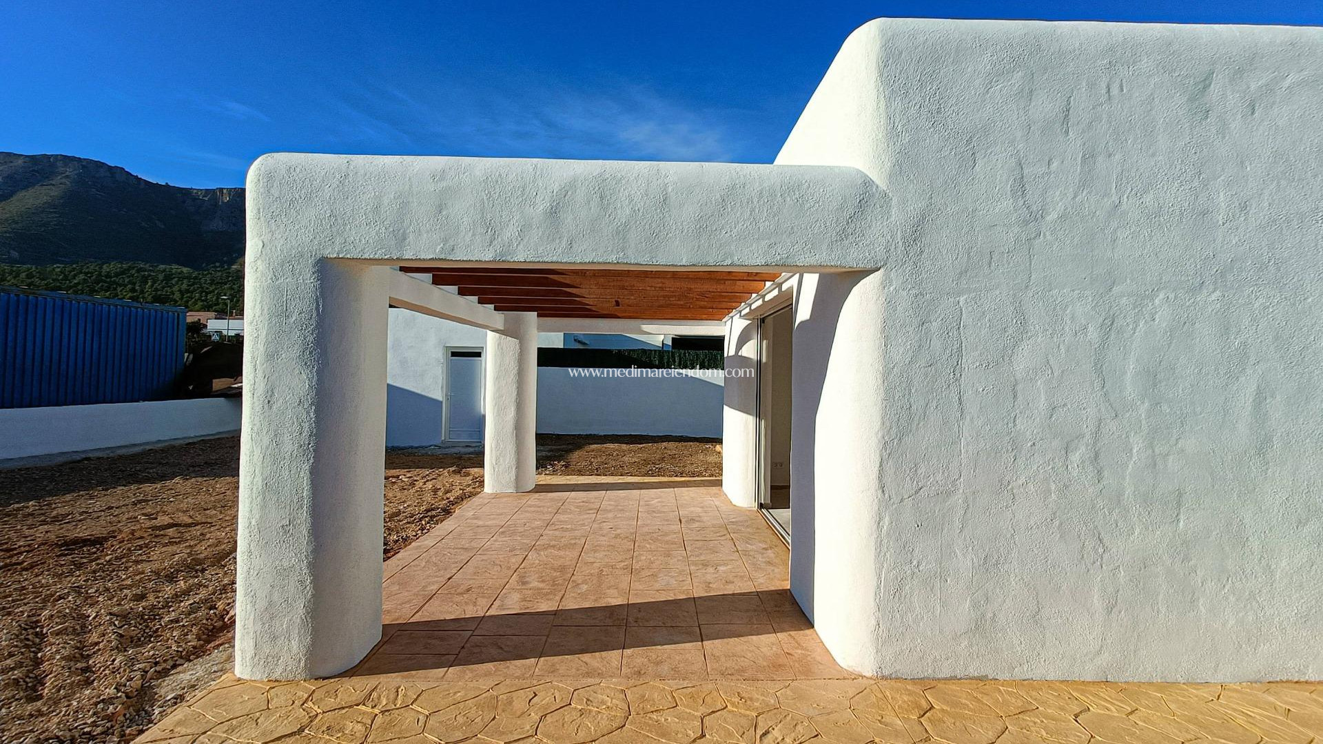 NYBYGD VILLA I IBIZA-STIL I POLOP Denne nybygde eksklusive villaen i Ibiza-stil ligger på en privilegert tomt i Polop, med fantastisk utsikt over fjellet og havet. Villaen er fordelt på en etasje, har 2 soverom, 1 bad, åpen kjøkkenløsning, stue, stort solarium, privat hage med parkeringsplass. Mulighet for et privat basseng mot en ekstra kostnad. Hovedterrassen ved bassenget og huset ligger ca. 1,60 m over gatenivå. Den er utformet slik at det ikke er noen visuelle barrierer (vegger eller rekkverk) mot utsikten. Bassenget fungerer som en avgrensning, og ytterveggen og de skulpturelle plantekassene gir nok privatliv fra folk som går på gaten. Mulighet for å bygge et ekstra soverom mot en ekstra kostnad. Villaens privilegerte beliggenhet, bare 10 km fra storbyer som Benidorm og Altea, og noen få minutters kjøring fra byer som La Nucía og Alfaz del Pí, gjør at det er mange tjenester tilgjengelig bare noen få skritt unna. De beste strendene, kjøpesentre, medisinske fasiliteter, restauranter... Hvis du er glad i sport, kan vi nevne at La Nucía er utnevnt til Costa Blancas sportshovedstad og tildelt den internasjonale prisen for sportsturisme, med en kalender full av nasjonale og internasjonale sportskonkurranser og arrangementer. Byen Polop har et fantastisk utvalg av muligheter for deg som elsker å være ute i naturen, omgitt av natur og enestående fred. Kommunen har middelhavsklima med kjøligere temperaturer og renere luft, til tross for at den bare ligger 15 minutter fra kysten. Den strekker seg fra elvene Guadalest og Algar til byen Villajoyosa, inkludert strendene i Albir og Benidorm, og innover i landet grenser den til Callosa og Guadalest.
