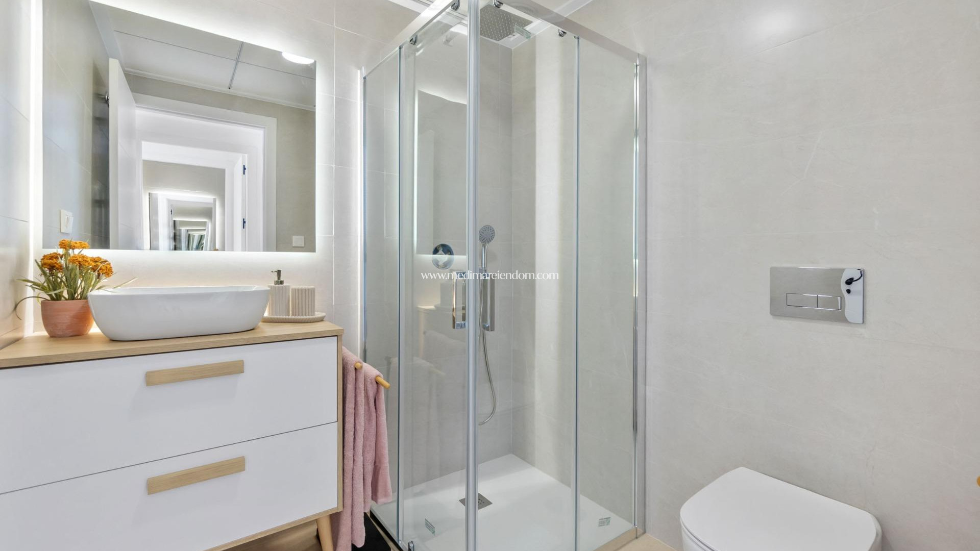 NYBYGG MED BUNGALOWLEILIGHETER I LOS BALCONES Oppdag den perfekte harmonien mellom luksus og komfort i leilighetene i første etasje med hage eller i andre etasje med balkong og solarium. Boligene består av 2 soverom og 2 bad, med mulighet for et tredje soverom etter behov. Alle leilighetene har spektakulær utsikt over Torreviejas rosa lagune, noe som skaper en unik opplevelse der naturen blir en integrert del av hverdagen. Fellesområdene er en forlengelse av din egen private oase. Fordyp deg i evighetsbassenget mens du nyter panoramautsikten over den rosa lagunen, lek med de minste på lekeplassen eller rusle gjennom de grønne områdene. Den strategiske beliggenheten gjør at du bare er noen minutter unna Torreviejas strender, det travle kjøpesenteret Zenia Boulevard og en rekke fasiliteter som supermarkeder, apotek og restauranter. Nærheten til golfbaner og motorveiavkjørselen til Alicante lufthavn sikrer enkel tilgang til alt du elsker. Disse eiendommene er mer enn et hjem; det er en livsstil som omfavner naturlig skjønnhet, moderne komfort og bekvemmelighet. Eksepsjonelle boliger er det perfekte stedet å leve det livet du alltid har drømt om. Velkommen til nye boliger, der hver dag er et mesterverk av luksus og ro!