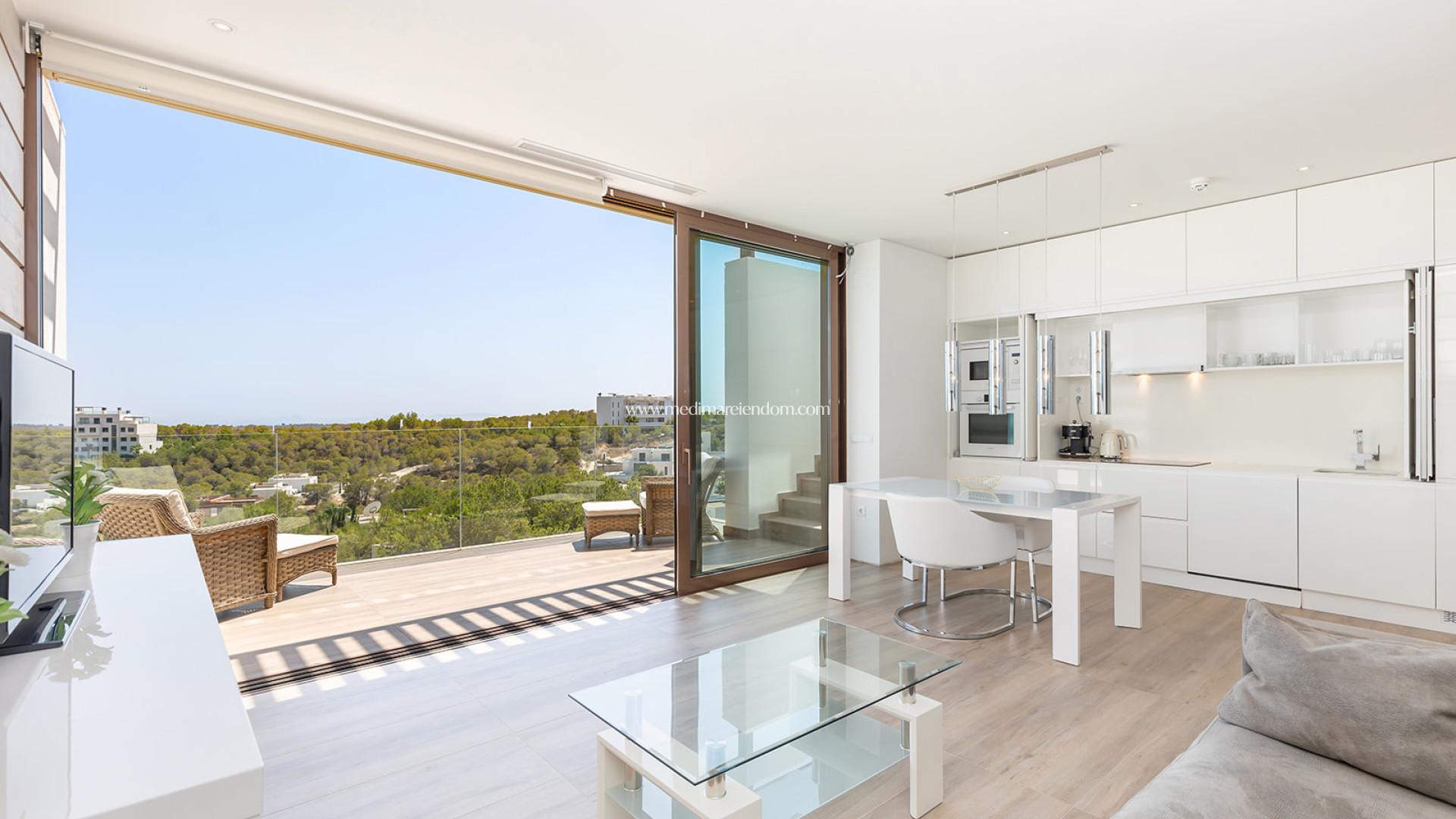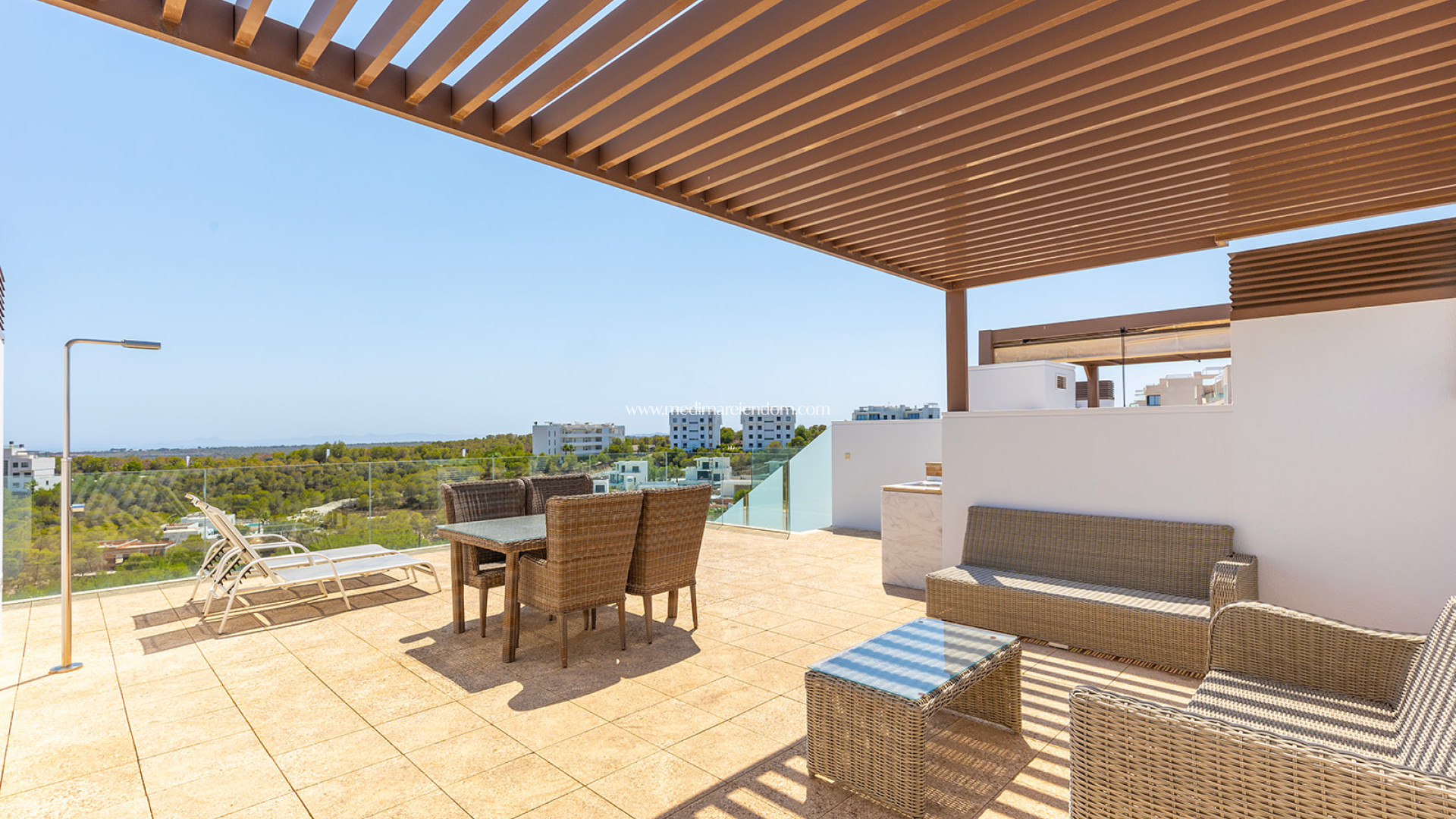 Luksus penthouse i Las Colinas Golf. Denne fantastiske leiligheten i toppetasjen har en romslig stue/spisestue og åpen kjøkkenløsning, fullt utstyrt med hvitevarer samt en terrasse med utsikt over fellesbassenget og grøntområdene. Eiendommen har to lyse soverom og et privat solarium med åpen kjøkkenløsning. Inkludert i leiligheten følger parkeringsplass og egen bod i kjeller. Las Colinas Golf & Country Club, hjertet av Costa Blanca Sør, er en privilegert urbanisasjon omgitt ikke bare av en av de beste golfbanene i hele Spania, men også vakkert middelhavslandskap, omfattende appelsin- og sitronlunder og pittoreske turer gjennom et naturlig miljø uten sidestykke i området. I tillegg tilbyr Las Colinas Golf & Country Club et komplett utvalg av sports- og fritidsaktiviteter, inkludert: Las Colinas Sports & Health Club, en racketklubb og tre restauranter med et variert gastronomisk tilbud. Ligger 40 minutter fra Alicante flyplass og 1 time fra Murcia - Corvera flyplass.