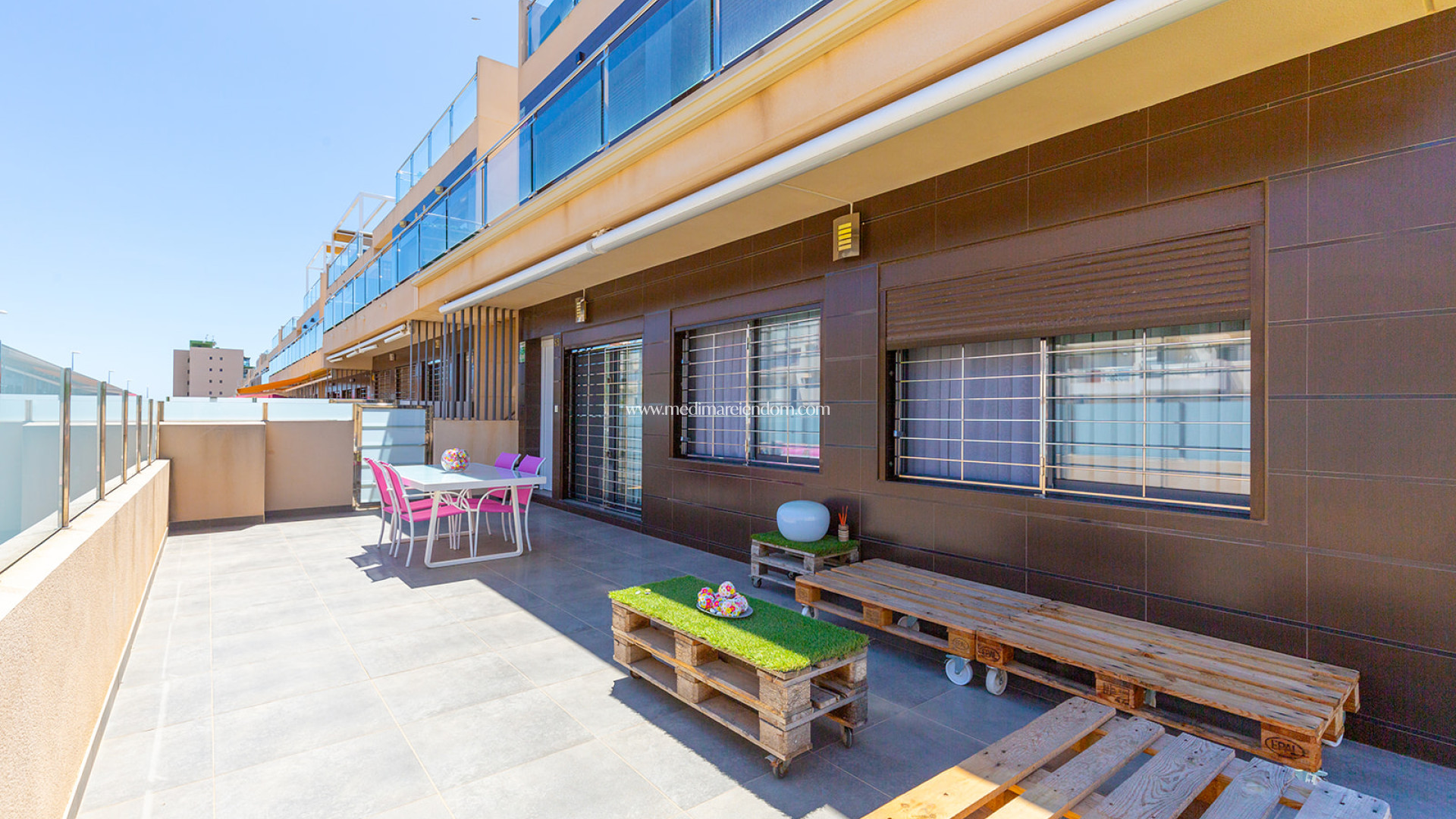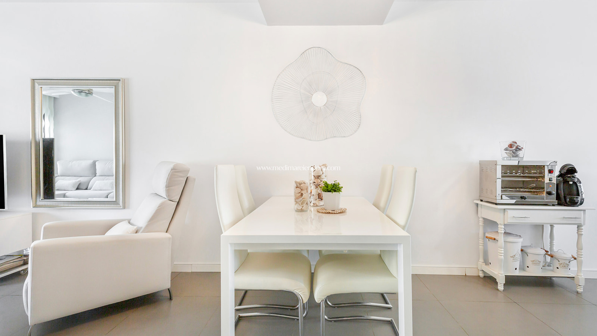 Romslig bungalow i første etasje i Torre de la Horadada. Denne moderne sørvendte eiendommen har 4 soverom, 3 bad, romslig stue/spisestue med åpen kjøkkenløsning og direkte utgang til terrasse og hage på 120m2. Det ligger i komplekset hvor du kan nyte felles svømmebasseng og hageområder. Torre de la Horadada er et prestisjefylt område på Costa Blanca, svært nær Mil Palmeras, Campoamor, San Pedro del Pintar og Orihuela Costa. De berømte saltlagunene i San Pedro del Pinatar og Thalasia marine spa-senter kan nås på bare 10 minutter. Pilar De La Horadada, nyter mer enn 2500 soltimer i året og en gjennomsnittstemperatur på 18ºC, noe som gjør det til et privilegert område. Den har et bredt spekter av tjenester, grøntområder, promenader og en marina. Bare 5 minutter fra kjøpesentrene La Zenia Boulevard og Dos Mares. I tillegg til disse fantastiske værforholdene, finnes det sandstrender som Playa Jesuitas, Playa del Puerto og Playa de las Higuericas. Godt kommunisert med riksveien N-332 og middelhavsmotorveien AP-7. Nær store byer som Murcia og Alicante.
