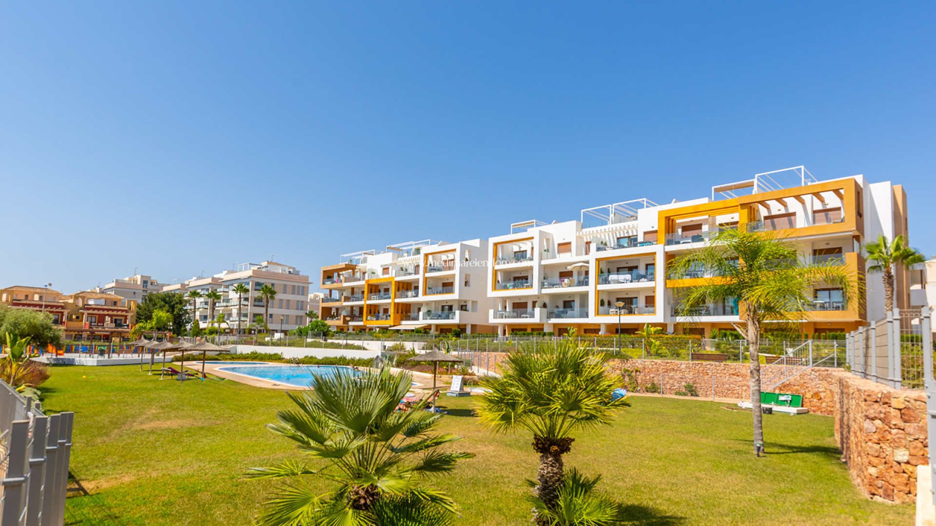 Leilighet i 2. etasje i Villamartin, Orihuela Costa. Vi presenterer denne vakre leiligheten fordelt på tre soverom, ett av dem med eget bad. En romslig stue med kjøkkenkrok og direkte utgang til terrasse på 22m2 med utsikt over boligens fellesarealer. Det ligger i boligområdet "Gala", hvor du kan nyte et felles svømmebasseng, boblebad og hager. Den har egen parkeringsplass. Villamartin er et prestisjefylt område med alle tjenester og fasiliteter mellom golf og hav. I nærheten ligger La Zenia Boulevard, som er det største kjøpesenteret i Alicante-provinsen. I nærheten ligger også Villamartin Golf Course, 5 minutter fra stranden, Real Club de Golf Campoamor og Las Ramblas Golf Course, omgitt av skoler, kjøpesentre, restauranter, apotek, bussholdeplasser som favoriserer oppholdet hele året. Den kobles enkelt med riksveien N-332 og middelhavsmotorveien AP-7.