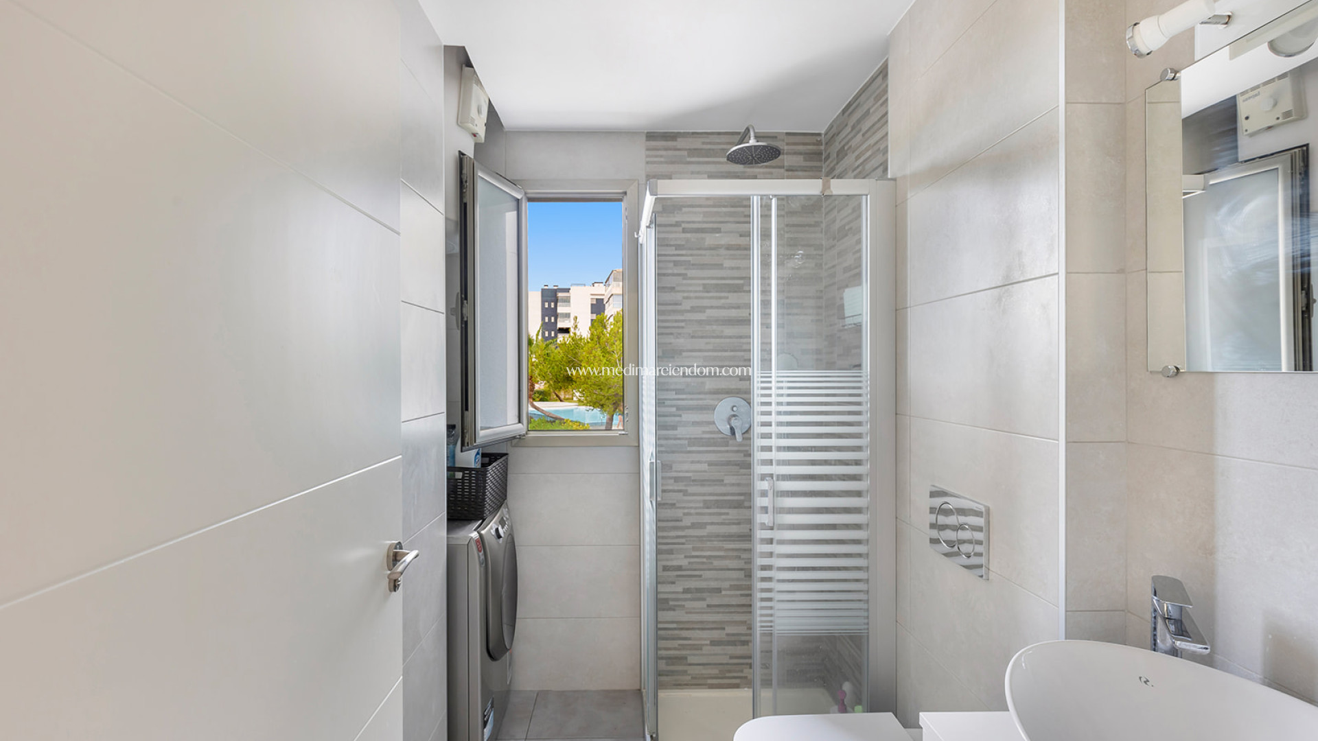 Første etasje leilighet i Villamartin, Orihuela Costa. Denne fantastiske leiligheten i første etasje har en romslig stue/spisestue og åpen kjøkkenløsning, fullt utstyrt med hvitevarer og en terrasse på 20m2. Eiendommen har to lyse soverom og to bad (ett av dem en-suite). Inkludert i leiligheten følger parkeringsplass og egen bod i kjeller. Det ligger i boligområdet Green Hills hvor du kan nyte innendørs oppvarmet basseng, 2 utendørsbassenger, treningsstudio og hageområder. Villamartin er et prestisjefylt område med alle tjenester og fasiliteter mellom golf og hav. I nærheten ligger La Zenia Boulevard, som er det største kjøpesenteret i provinsen Alicante. I nærheten ligger også Villamartin Golf Course, 5 minutter fra stranden, Real Club de Golf Campoamor og Las Ramblas Golf Course, omgitt av skoler, kjøpesentre, restauranter, apotek, bussholdeplasser som favoriserer oppholdet hele året. Den kobles enkelt med riksveien N-332 og middelhavsmotorveien AP-7.