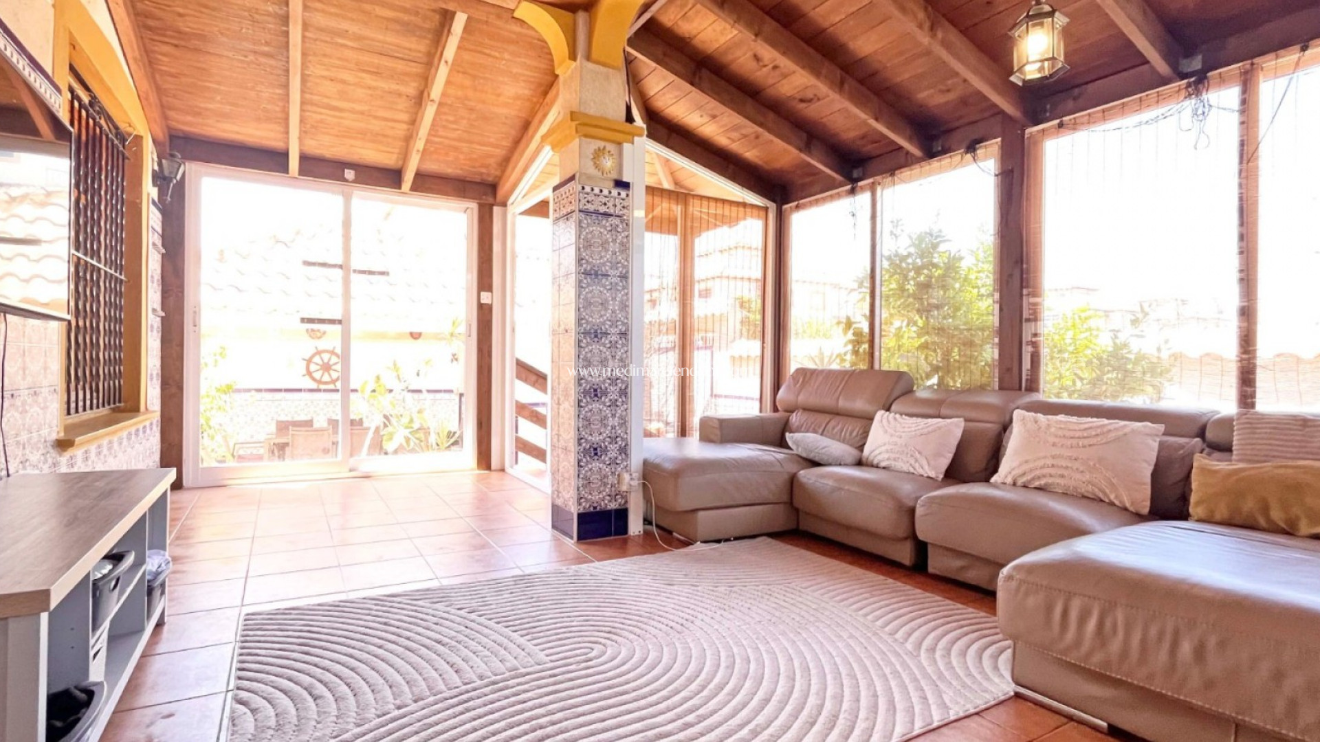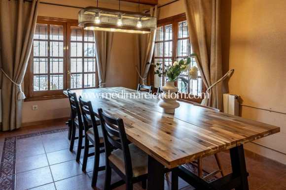 Vi er stolte av å presentere denne praktfulle villaen med ikke mindre enn 8 soverom, 3 bad, 2 balkonger, stor terrasse i første etasje og felles svømmebasseng. Vi får tilgang til eiendommen gjennom en fotgjengerport eller en bredere port for å parkere bilen i Inside. På høyre side av huset er en helfliset terrasse med ettermiddags/kveldssol. Vi kommer inn i huset gjennom den romslige vinterhagen som er innglasset og tilbygg til stuen. I denne etasjen finner vi også åpen kjøkkenløsning, 2 soverom og et komplett bad. Vi går ovenpå og kommer til en passasje med tilgang til ytterligere 3 soverom og enda et komplett bad. Opp enda en trapp kommer vi til en annen passasje med tilgang til ytterligere 3 soverom og et komplett bad. To soverom i denne etasjen har balkong. Et besøk anbefales på det sterkeste for å fullt ut sette pris på plassen til dette huset.