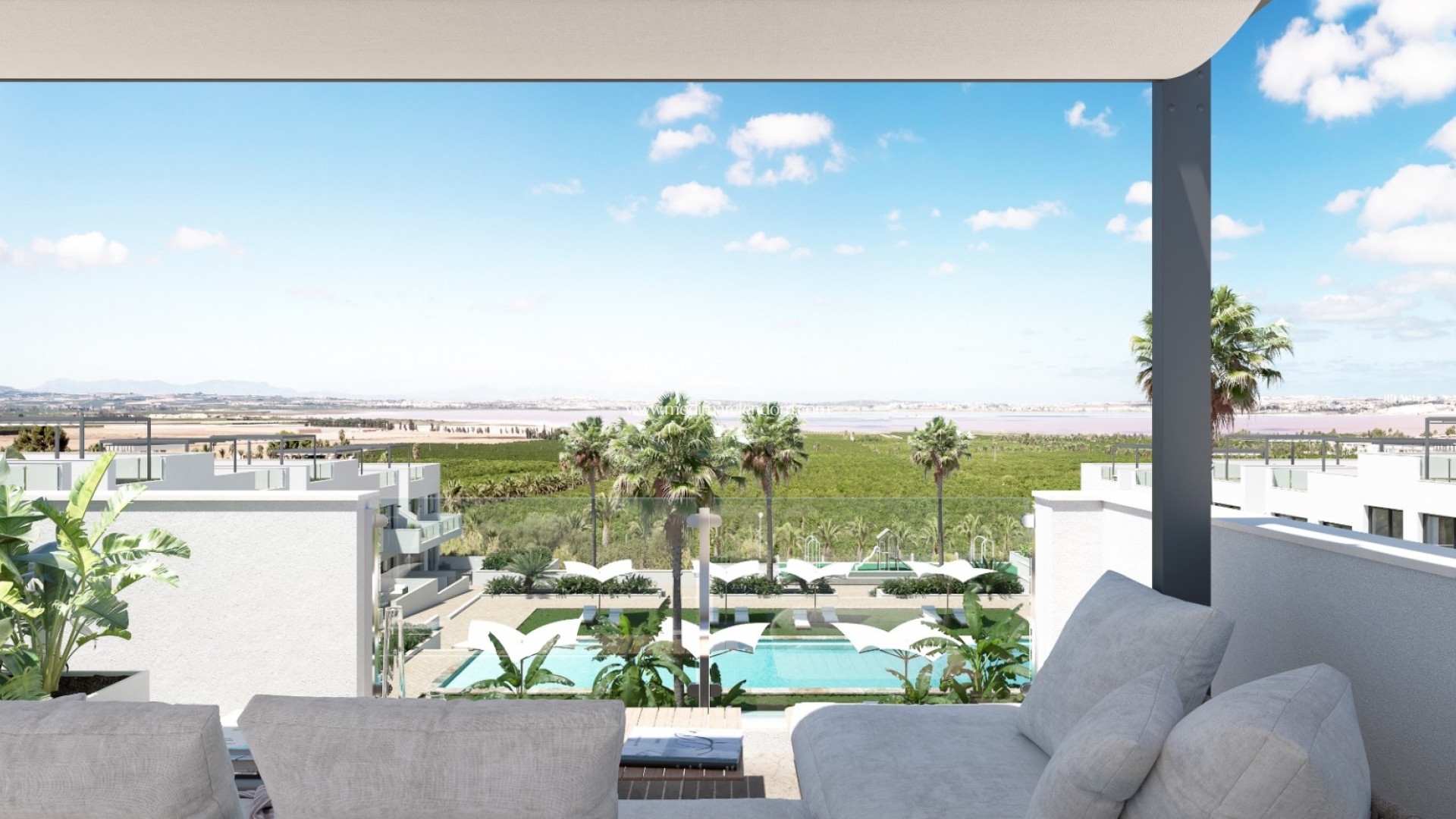 Velkommen til boligen Unaro og Los Balcones. Vi er stolte av å presentere denne utviklingen av leiligheter på bakkeplan med hage og leiligheter i toppetasjen med solarium i fellesskap med felles svømmebasseng og valgfri parkeringsplass under bakken. Her nyter du grønne omgivelser, gode kommunikasjoner og utsikt over saltsjøen. Alle eiendommene kommer med et 3-roms alternativ for ytterligere 6000 €.