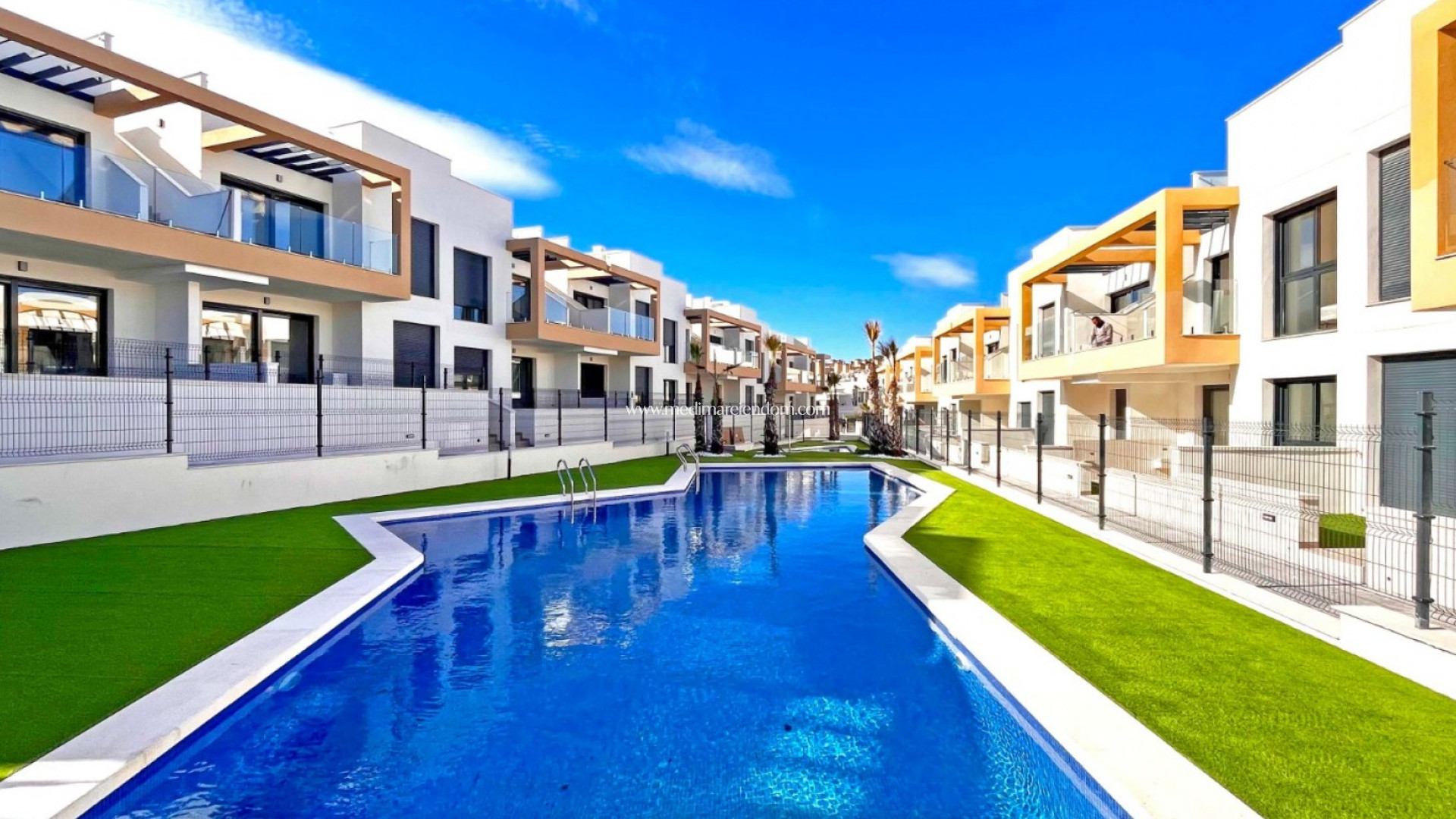 Nybygd topp gloor leilighet i gated community med privat parkering og felles svømmebasseng. Vi går inn i leiligheten og kommer til en romslig og lys stue med åpen kjøkkenløsning og spiseplass. Foran oss er skyvedører til balkong med utsikt over bassenget. Langs den ene langsiden av stuen er det en gang med tilgang til de to soverommene og et familiebad med dusjkabinett. Hovedsoverommet har eget bad med dusjkabinett og skyvedører til balkong. Kun 5 minutter fra golfbanen Villa Martín og kjøpesenteret La Zenia Boulevard. Komplekset ligger 40 minutter fra Alicante flyplass og 1 time Murcia - Corvera flyplass.