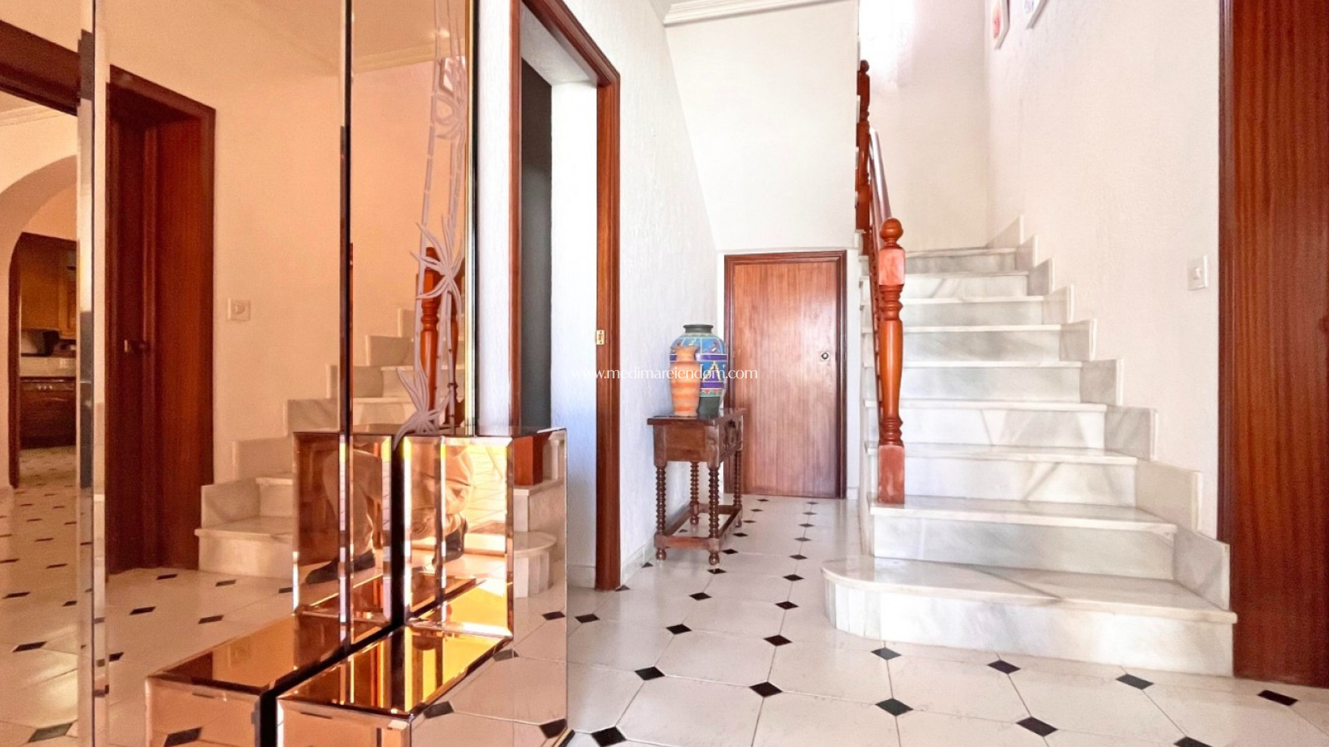 Oppdag selve symbolet på kystliv i denne utsøkte frittliggende villaen, ideelt plassert på strandsiden av prestisjetunge Cabo Roig. Plassert på en sjenerøs 1170 m² stor tomt, tilbyr denne eiendommen et ekspansivt 265 m² boareal, designet for å gi komfort, luksus og god plass for avslapning og underholdning. **Høydepunkter på eiendommen:** **Eksteriør:**- **Store terrasser:** Nyt utendørslivet til det fulle med vidstrakte terrasser på begge sider av huset, perfekt for utendørs servering, soling og sosiale sammenkomster.- **Grillområde:** Underhold familie og venner i det dedikerte grillområdet, og skap et uforglemmelig øyeblikk i bassenget eller et privat basseng:** forfriskende dukkert i det 5 x 10 m private bassenget, omgitt av frodig landskap for privatliv og ro. I tilknytning til bassenget ligger ytterligere et bad.- **Garasje & Innkjørsel:** Praktiske parkeringsløsninger med garasje og innkjørsel med plass til inntil to biler. - **En bonusfunksjon er den 30 m2 store bodegaen under jorden. **Interiør - Første etasje:**- **Enorm stue:** En romslig stue med en koselig peis som skaper en varm og innbydende atmosfære for avslapning og underholding.- **Spisestue:** Et elegant spiseområde perfekt for familiemåltider og formelle middager.- **Velutstyrt kjøkken:** Et separat, fullt utstyrt kjøkken med moderne kjøkkenutstyr og moderne kjøkkenutstyr. plass.- **Vaskerom:** Praktisk vaskerom for ekstra bekvemmelighet og lagring.- **Soverom og bad:** Tre komfortable soverom og to velutstyrte bad, som gir god plass til familie og gjester. **Interiør - Ovenpå:**- **Lounge:** Et koselig salongområde perfekt for avslapning, lesing eller for å nyte en rolig kveld.- **Balkonger:** To balkonger med praktfull utsikt og et perfekt sted for morgenkaffe eller kveldscocktailer.- **Soverom og bad:** Et ekstra soverom og bad ovenpå, eller gir et privat tilfluktssted. Denne fantastiske villaen i Cabo Roig kombinerer sømløst luksus, plass og funksjonalitet, noe som gjør den til et ideelt valg for de som søker en eksklusiv strandbolig. Med sin førsteklasses beliggenhet, imponerende funksjoner og god plass for både innendørs og utendørs opphold, tilbyr denne eiendommen en unik mulighet til å oppleve det beste av kystliv. Ikke gå glipp av sjansen din til å eie denne praktfulle villaen. Kontakt oss i dag for å avtale en visning og begynne å leve din drømmelivsstil!