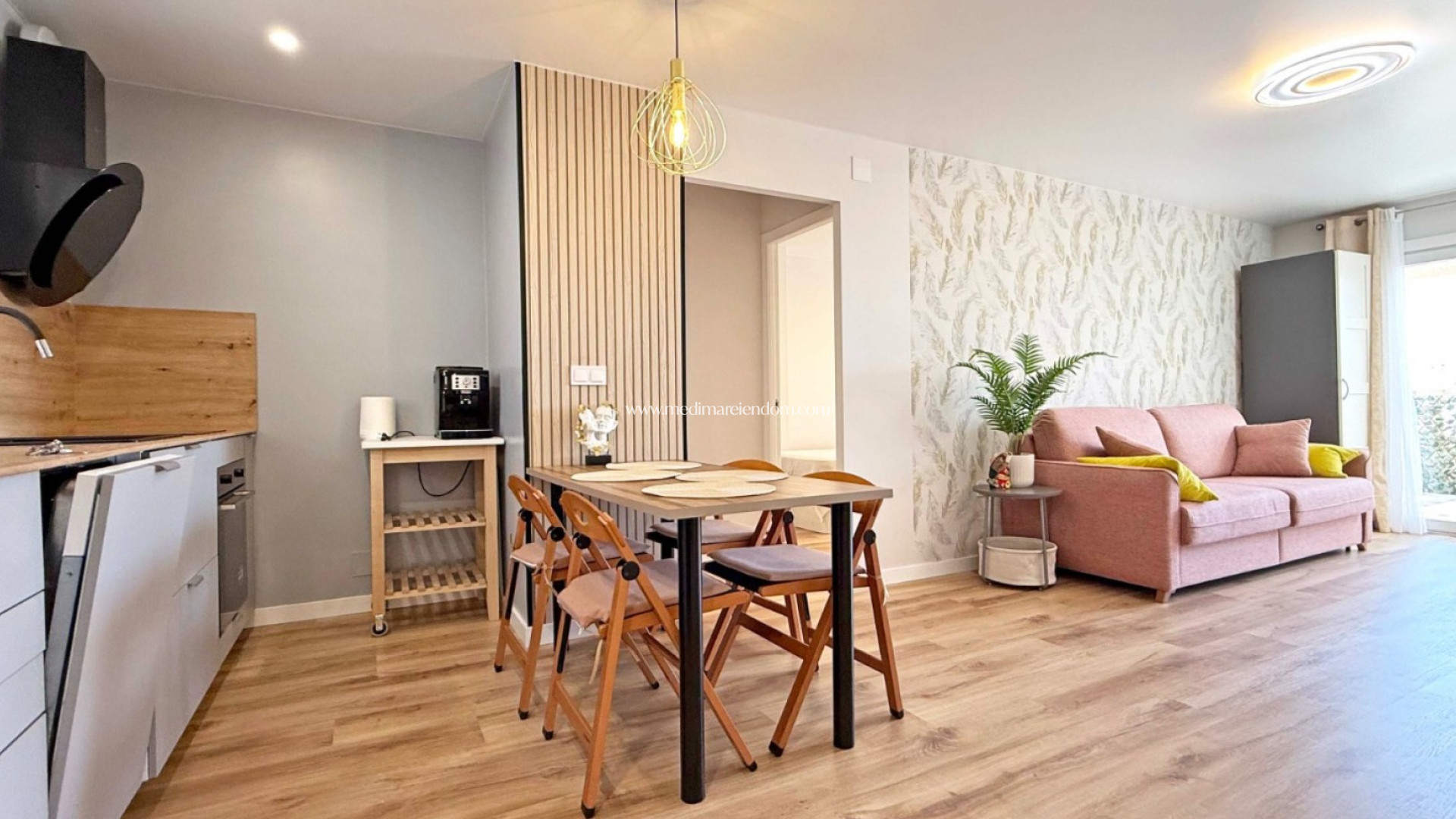 Gå inn i kystlivet med denne vakkert renoverte 1-roms toppleiligheten, perfekt plassert kun 200 meter fra den gylne sanden på Acequión-stranden i Torrevieja. Denne lyse og moderne leiligheten ligger i 5. etasje, og har en romslig sørvendt terrasse med fantastisk havutsikt - det perfekte stedet å slikke sol hele året. Interiøret har blitt smakfullt renovert, med en moderne åpen planløsning, et elegant bad og et koselig soverom med innebygd oppbevaring. Enten du leter etter en ferietur, en utleieinvestering eller et lite vedlikeholdshus ved sjøen, merker denne eiendommen av i alle boksene. Nyt den uslåelige beliggenheten, kun en kort spasertur fra promenaden, lokale kafeer, butikker og alle fasiliteter.