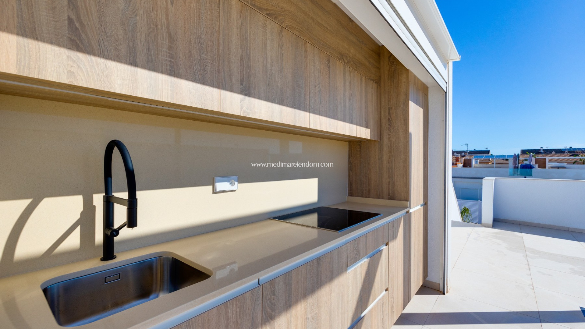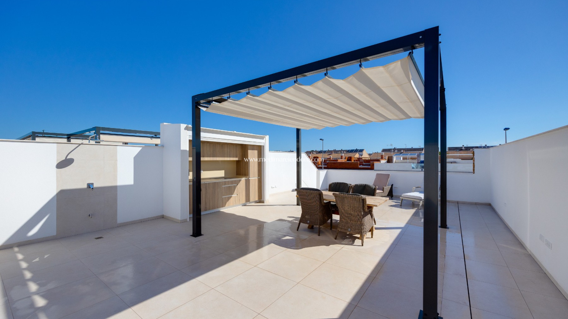 Ovenpå venter et privat solarium på 88 m² , komplett med et fullt utstyrt utekjøkken – ideelt for underholdning under den spanske solen.