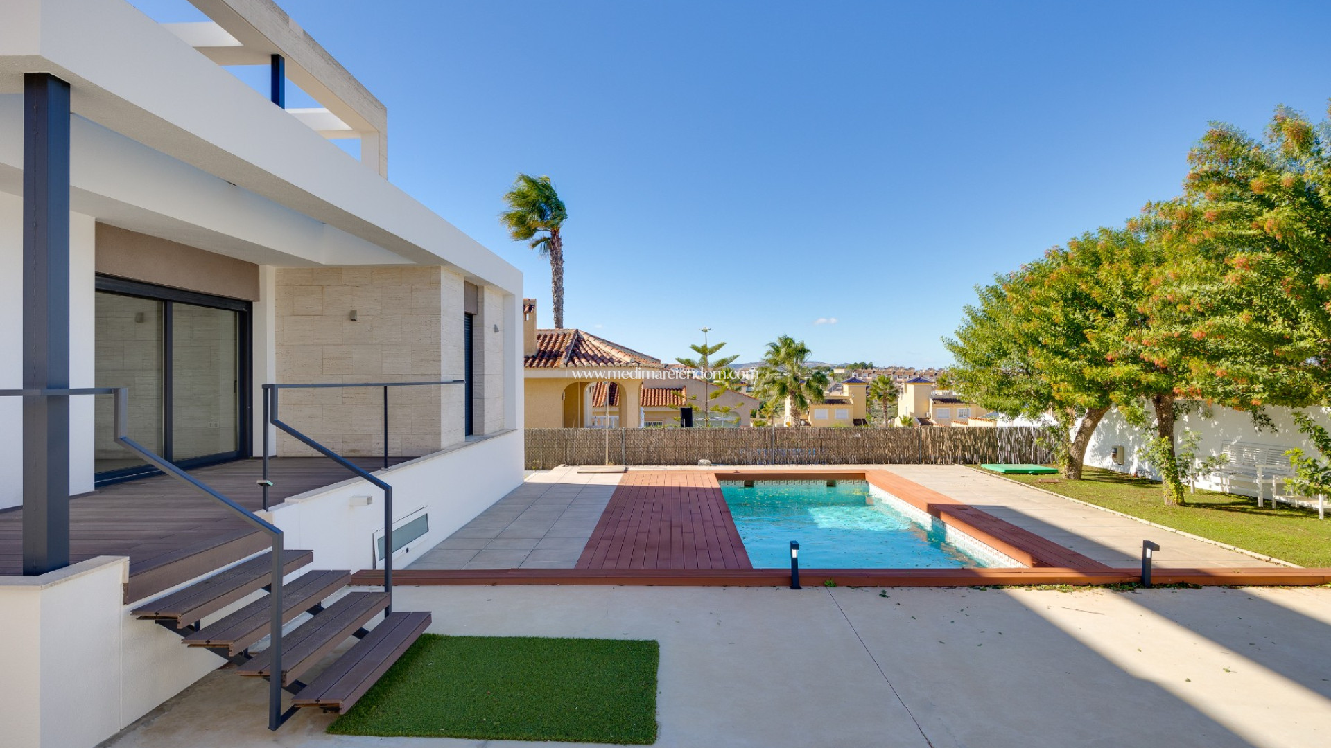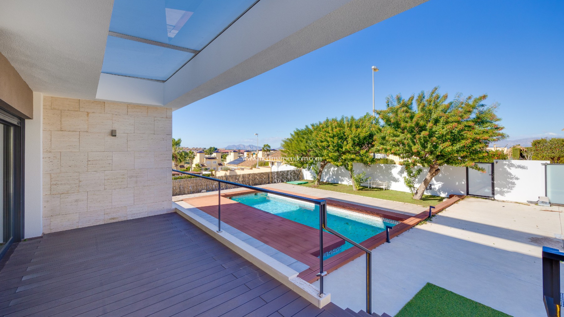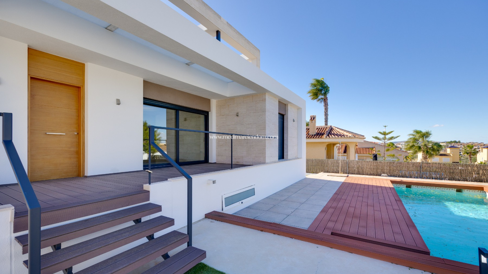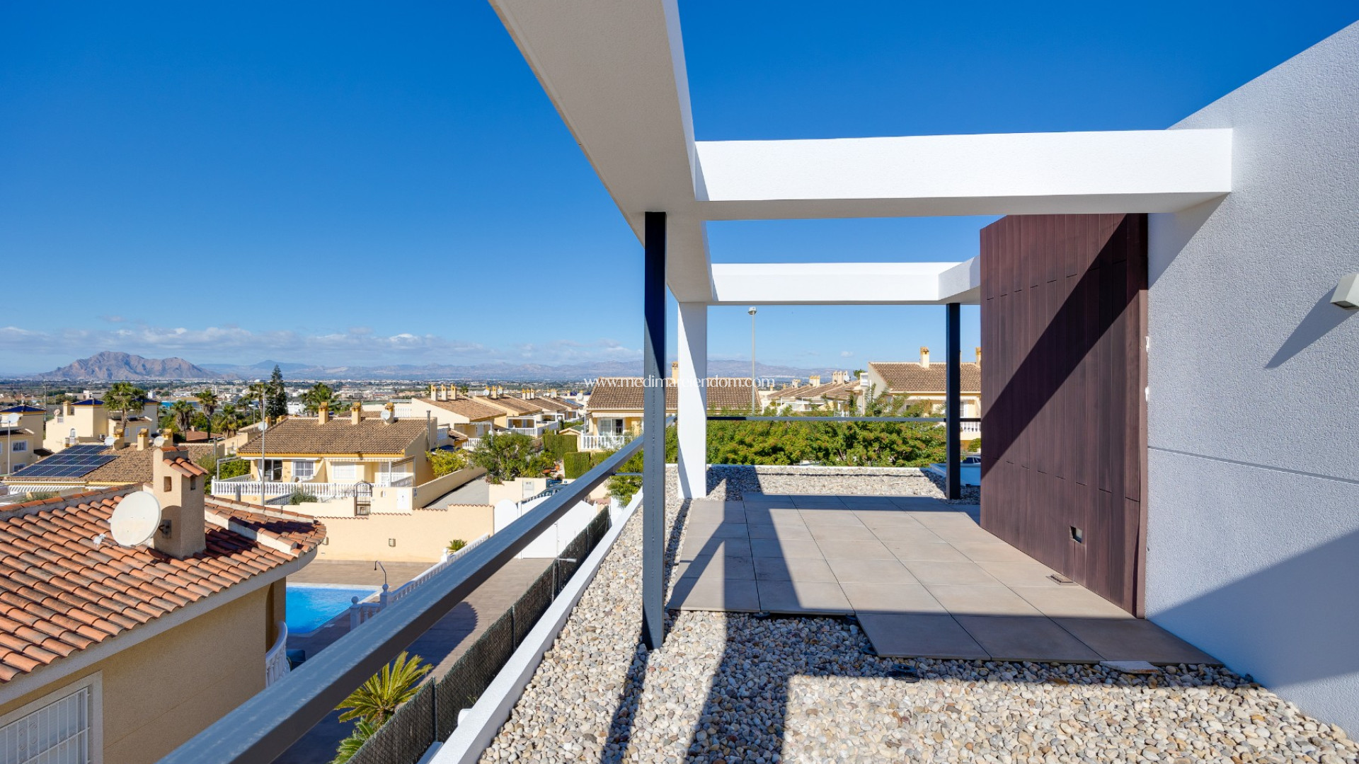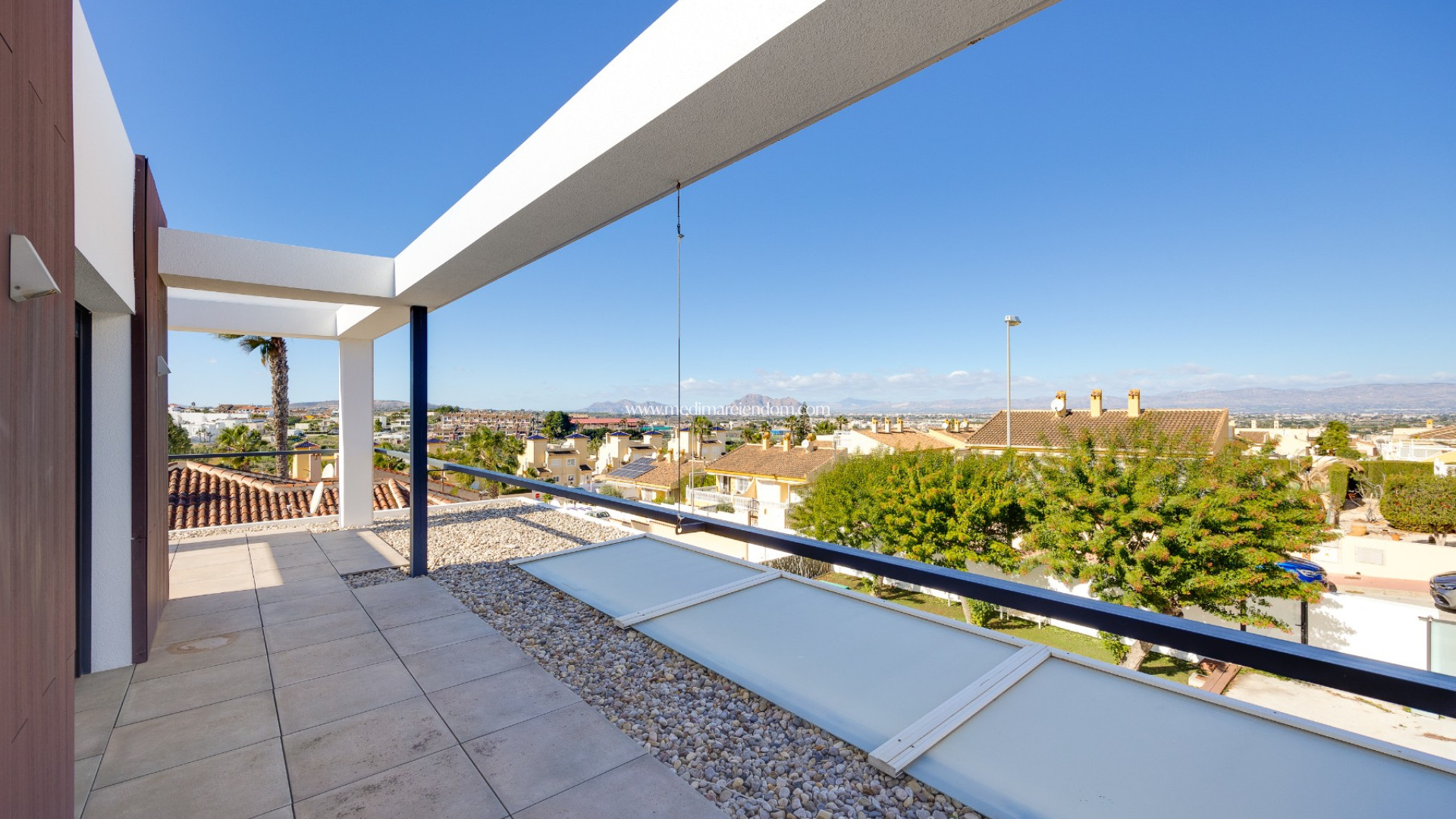 Denne stilrene, frittstående villaen ligger i et ettertraktet og rolig boligområde i Ciudad Quesada, og kombinerer moderne arkitektur, høy byggekvalitet og en attraktiv beliggenhet nær alle fasiliteter.