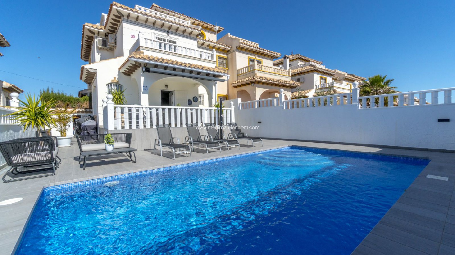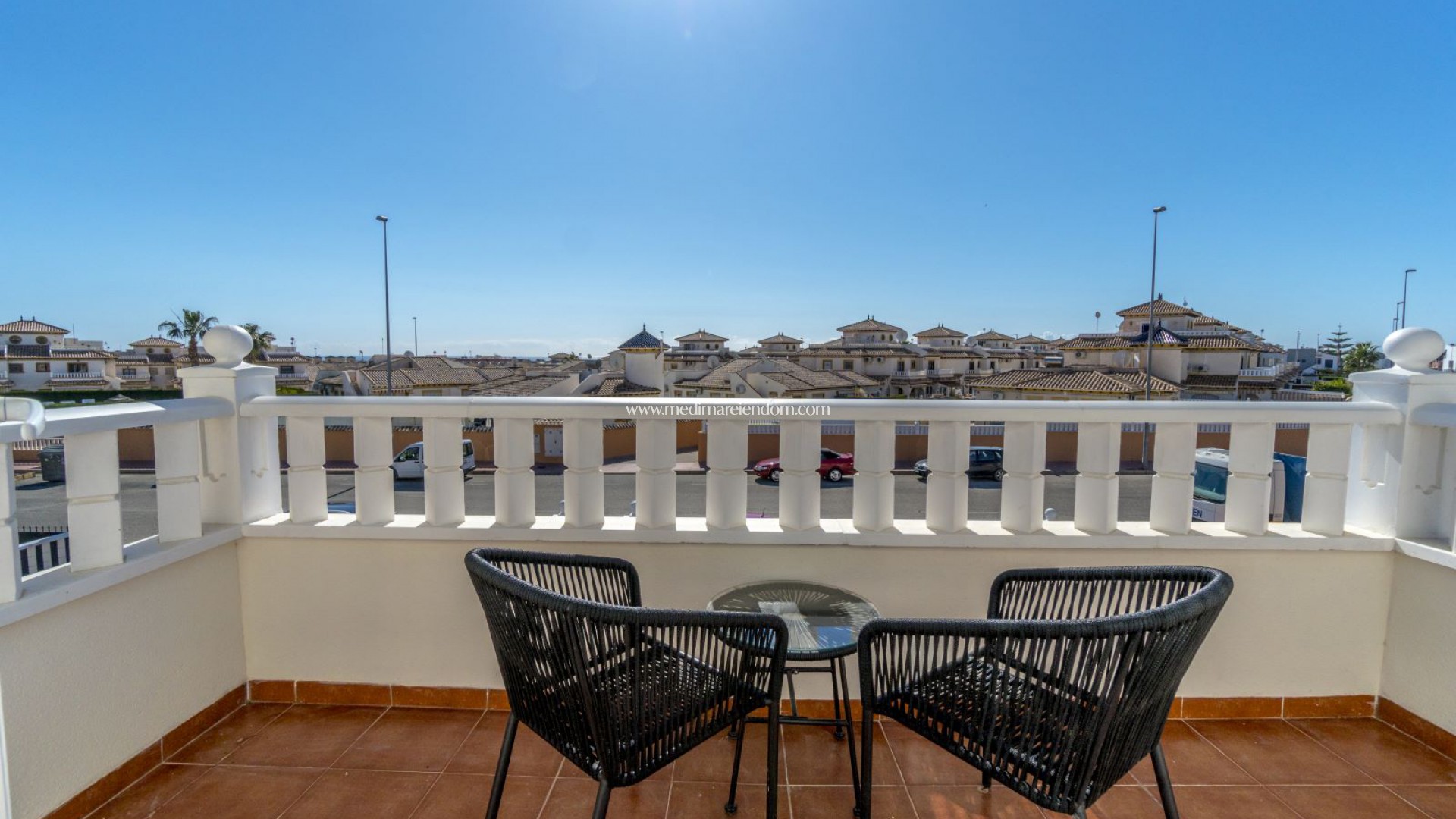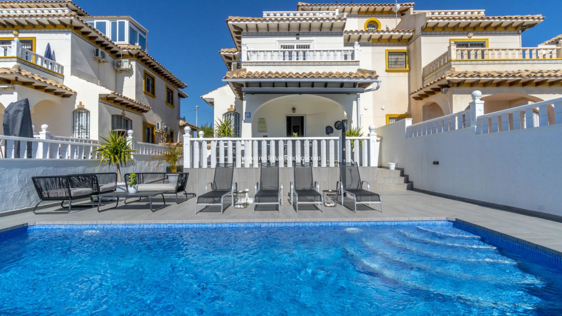 Refubrished townhouse in Lomas de Cabo Roig, Orihuela Costa. The property is built over 2 floors on the plot 116 m2 with private swimming pool On the ground floor there is a dining-living room with open plan kitchen and 1 bathroom. On the top floor there are 2 bedrooms and 1 bathrooms. There is also a roof terrace, storage room. The property has modern furniture and ready to move in.