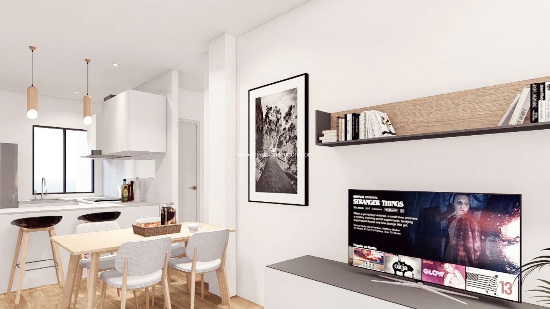 New residential complex consisting of apartments in Villamartin. You can choose between 2-3 bedroom apartments with garden on the ground floor or 2-3 bedroom top floor apartments with private roof terrace. Each apartment has 2 bathrooms, living room and open plan kitchen.