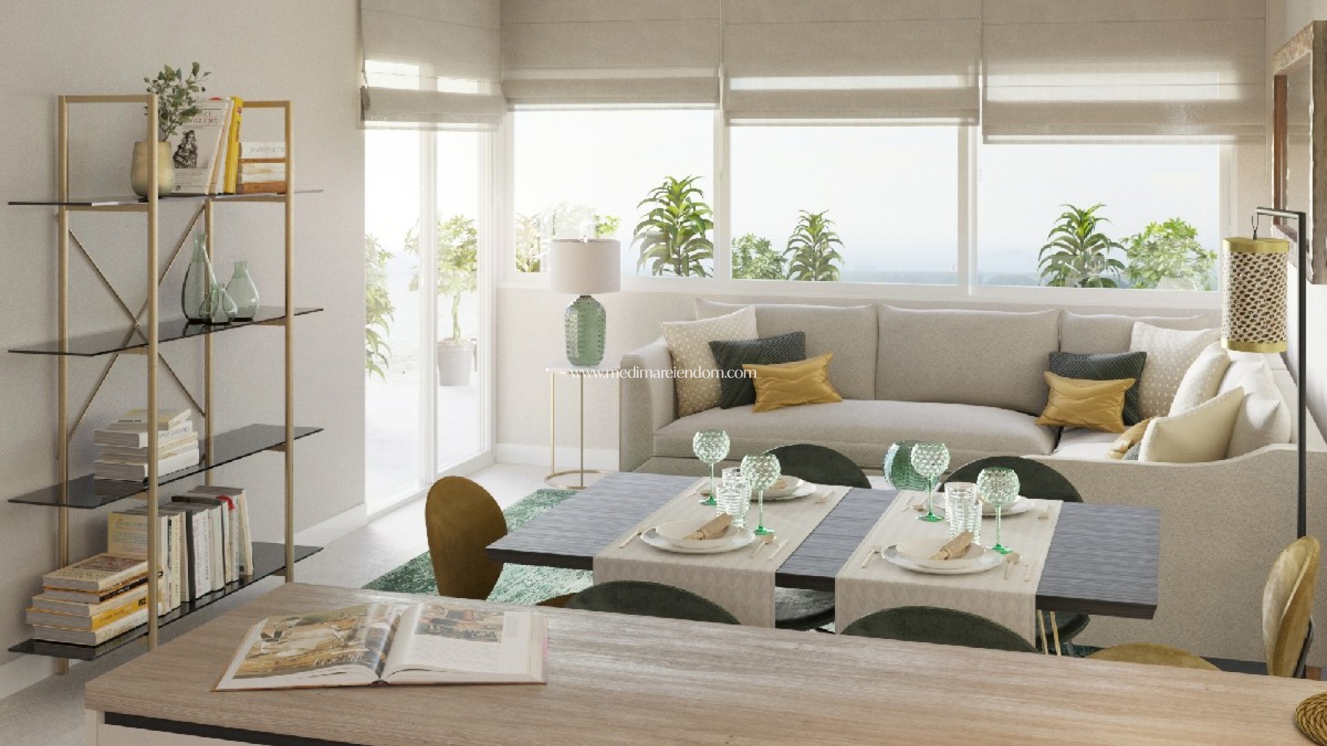 Each apartment has a living room with open plan kitchen, 3 bedrooms, 2 bathrooms and a terrace.
