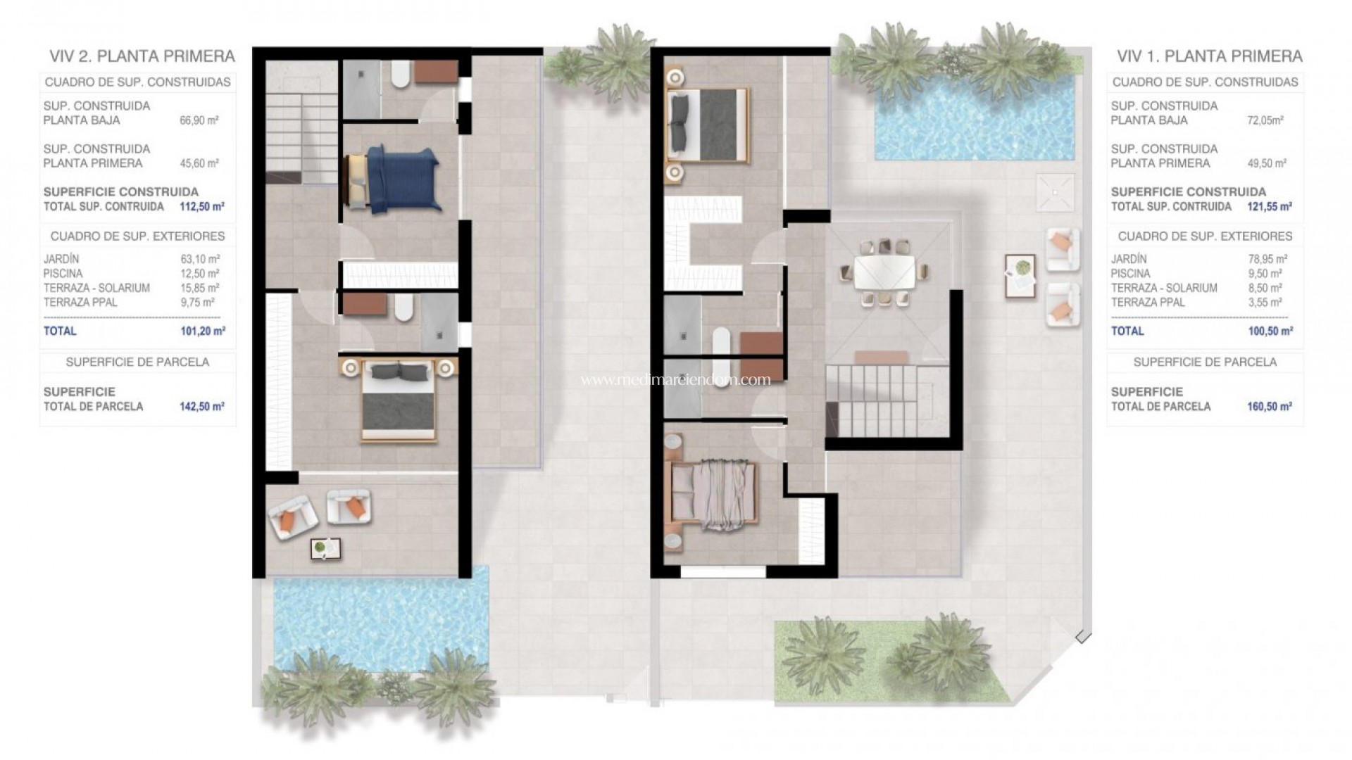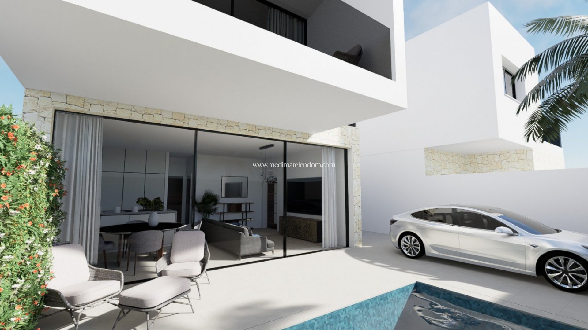 NEW BUILD VILLAS IN SAN PEDRO DEL PINATAR New Build 2 villas in San Pedro del Pinatar. New Build modern villas has 3 bedrooms, 3 bathrooms, open plan kitchen with the living area, fitted wardrobes, private garden with the pool and off road parking space, private solarium. Large windows in the living room with direct access to the pool area. Villas well located with respect to schools, shops, sports centres and public transport San Pedro del Pinatar's privileged location on the Mar Menor and Mediterranean coastline it attracts those with an interest in sailing and water sports, providing marina mooring and sailing clubs, while the beaches and natural mud baths attract those seeking safe sun, sea and sand. San Pedro del Pinatar has an established community and offers an excellent range of activities, including covered swimming pool and sports facilities, as well as a year round programme of social activities by the pleasant winter weather. The benefits of the mud baths, typical of the region, or the calm waters of the Mar Menor, have favoured the growth of Lo Pagán, which currently has all kind of amenities. In addition, it has an excellent location, just 5 minutes from the Commercial Centre Dos Mares. Murcia/Corvera airport is 30 minutes away and Alicante airport is an hour drive away.