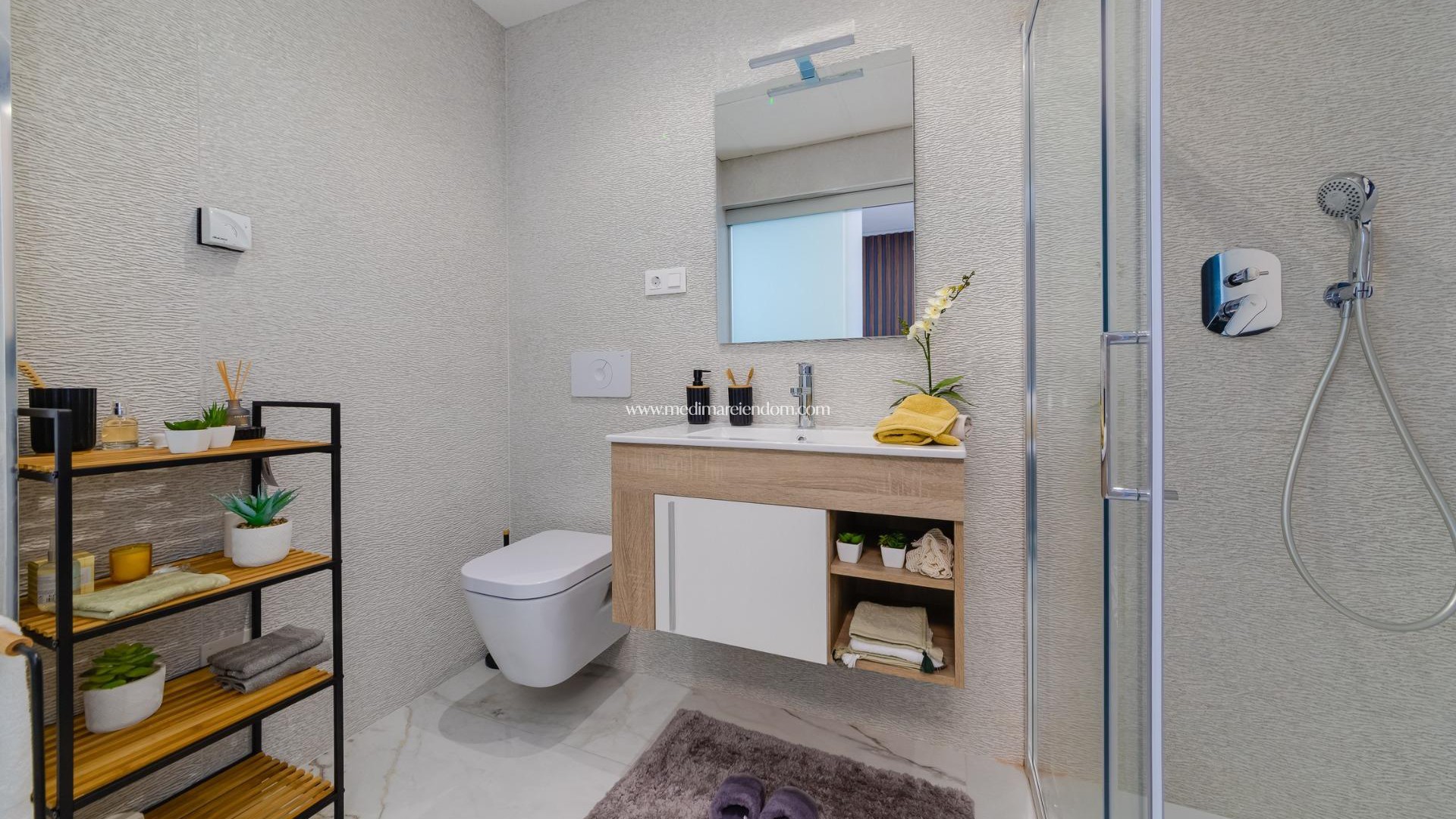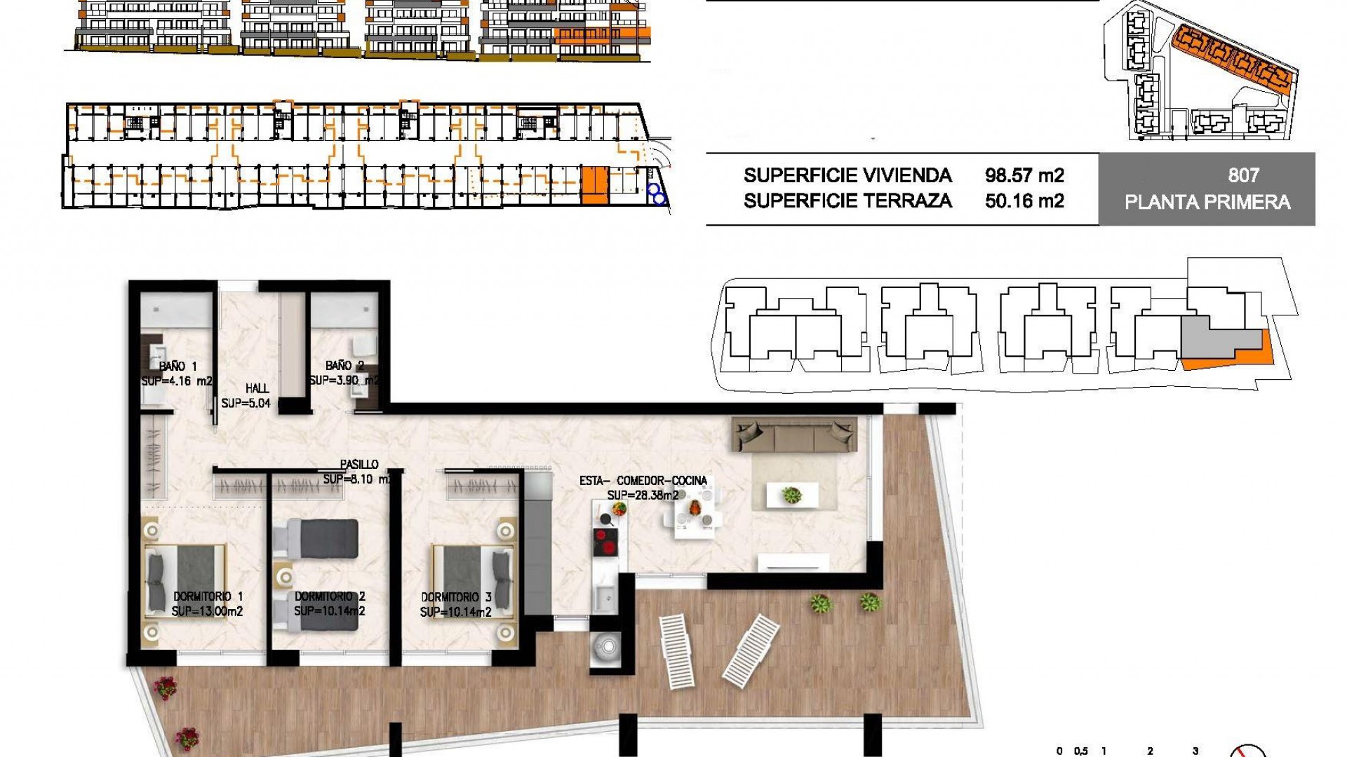 NEW BUILD RESIDENTIAL IN PLAYA FLAMENCA New Build luxury complex of apartments with 2/3 bedrooms, 2 bathrooms and large terraces located in Playa Flamenca close to the sea. Most apartments have a sea view! You can choose from ground floor apartments with garden, apartments on the first and second floor with terrace, or penthouses (with solarium) on the third floor. All apartments comes with underground parking and closed storeroom. Complex also offers you a communal swimming pool with green areas, a gym with sauna, a children’s playground and a pentaquin area. Playa Flamenca is a quiet beach-side residential urbanization, located 40 minutes drive from Alicante airport and 15 minutes drive from the bustling town of Torrevieja. The urbanisation made of apartments and villas sits on a well-kept, small beach with sun bed hire available during the summer months. Across the main road, inland from the complex, there is a large modern shopping centre with a major supermarket, many restaurant and bars, banks, hairdressers and boutiques. Three championship courses are within a 10 minute drive of the resort, including the fabulous Villamartin, a frequent venue for the Mediterranean Open. The Campoamor Golf Course is set amongst the palm and pine trees and is a beauty; nearby Las Ramblas is another magnificent course and a real test of golf skills.