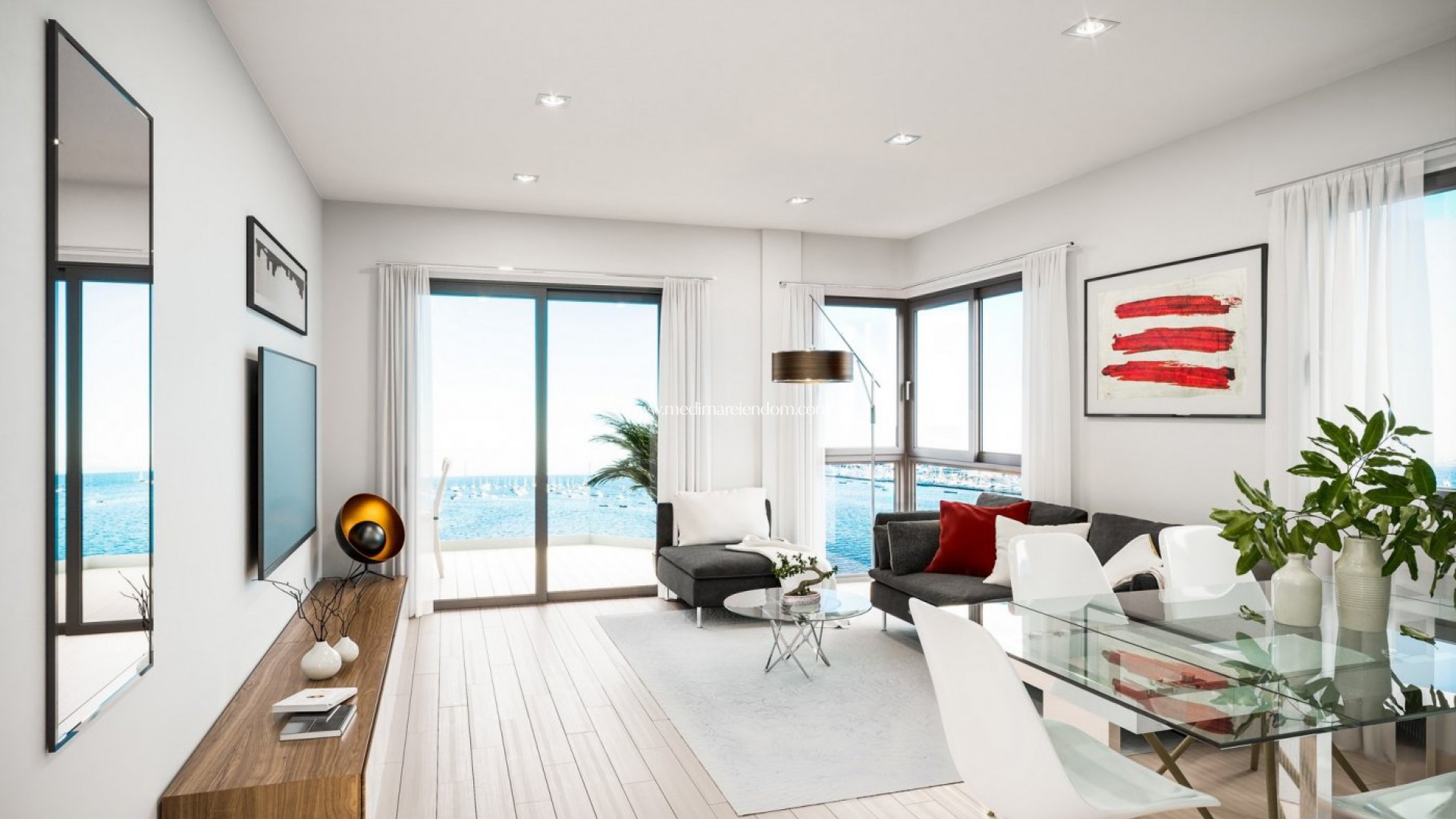 NEW BUILD SEAFRONT APARTMENTS IN LO PAGAN New Build residential of 10 frontline apartments in Lo Pagan. These apartments will be built to the highest standard and are just a few steps away from the beach, restaurants, promenade and shops of Lo Pagan. The building has 3 floors with 2 or 3 properties per floor, 2 or 3 bedroom options. All apartments will have amazing views of the Mar Menor and the 2 penthouse properties offer a private solarium. As an option also you can have underground parking and storeroom. San Pedro del Pinatar's privileged location on the Mar Menor and Mediterranean coastline it attracts those with an interest in sailing and watersports, providing marina mooring and sailing clubs, while the beaches and natural mud baths attract those seeking safe sun, sea and sand. San Pedro del Pinatar has an established community and offers an excellent range of activities, including covered swimming pool and sports facilities, as well as a year round programme of social activitiesby the pleasant winter weather. The benefits of the mud baths, typical of the region, or the calm waters of the Mar Menor, have favored the growth of Lo Pagán, which currently has all kind of amenities. In addition, it has an excellent location, just 5 minutes from the Commercial Centre Dos Mares. Murcia/Corvera airport is 30 minutes away and Alicante airport is an hour drive away.