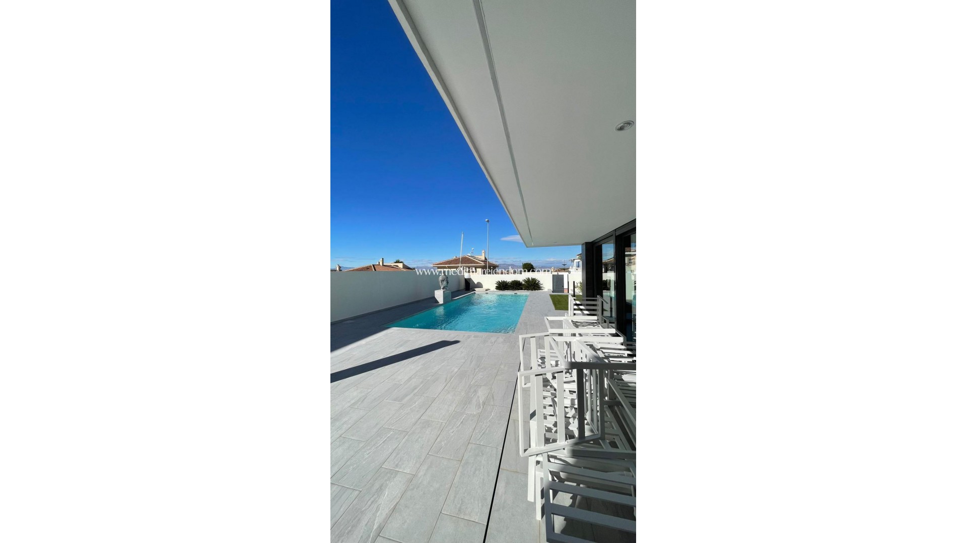 NEW BUILD VILLAS IN BENIJOFAR New Build villas located in Benijofar, short drive from the beautiful beaches of Guardamar del Segura and several golf courses. Villas with 3 bedrooms, 2 bathrooms, spacious living-dining room with an open-plan kitchen, terrace and private solarium. It also has a private garden with private pool and parking area. Benijofar it is a lovely village with a charming church and all services such as supermarkets, pharmacies, banks, restaurants and natural park located very close to the villas. There are several golf courses close by as well as water parks in nearby Rojales and Torrevieja. Benijófar located a few minutes from the N-332 and AP-7. Just 30 minutes from Alicante airport, 10 minutes from the beaches of Guardamar and Torrevieja.