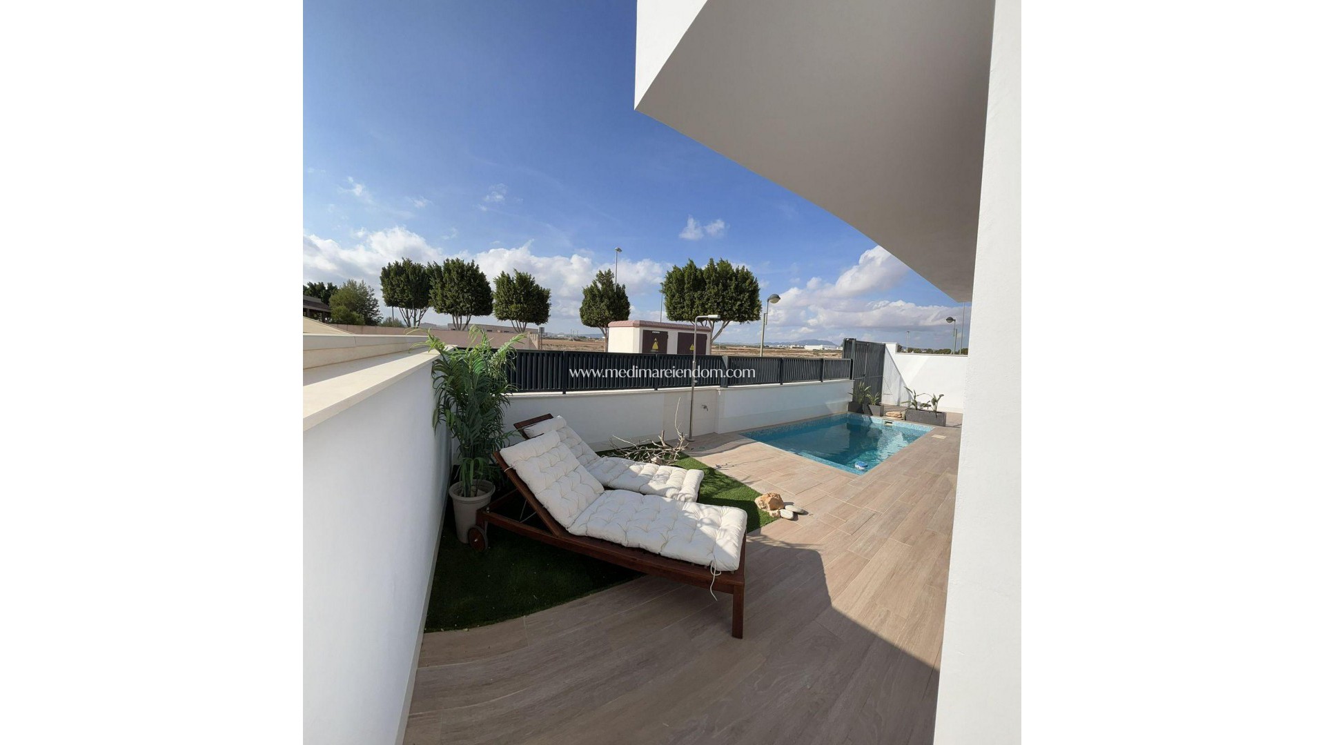 NEW BUILD KEY READY VILLA IN ROLDAN New Build key ready one level villa with an ample solarium and private pool in Roldan.Modern villa has 2 spacious bedrooms, 2 designer bathrooms and a semi-open kitchen that flows into an elegant living room. Private garden with the pool and parking area. Private solarium designed for maximum enjoyment of all hours of sunlight. Villa located proximity to the centre of Roldán, surrounded by premium services, green spaces, and several renowned golf courses within a short distance. Roldan – it’s ideal for the golfers as “Terraza’s de la Torre” and “La Torre Golf Resort” are right on the doorstep. Yoga, Pilates, 2 gyms and “campo football” are all in the town centre. Just 15 minutes from the Mar Menor beaches and 15 minutes from the new International Murcia Airport.