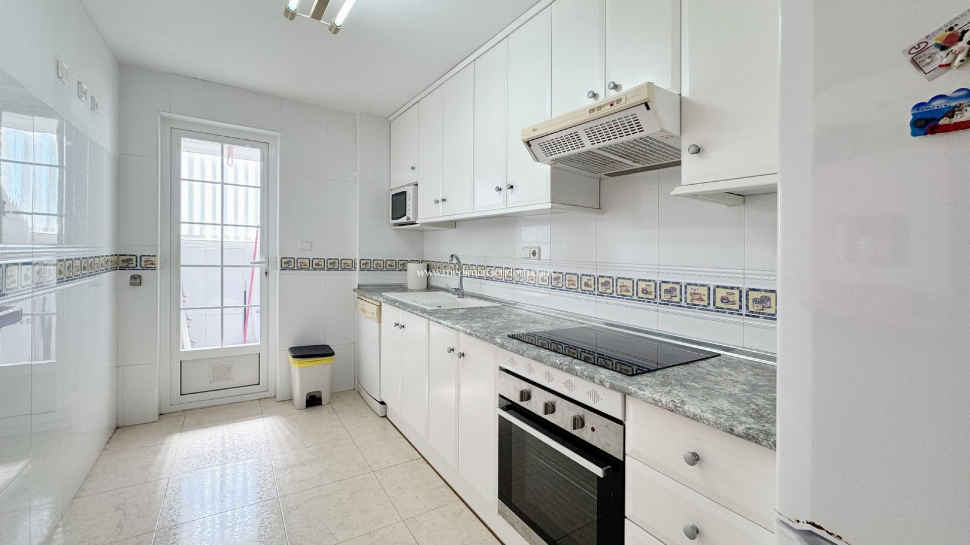 This charming apartment is located in the prestigious Río Mar residential complex in Torre de la Horadada. With a built area of 103 m² and a usable area of 72 m², the property is distributed into three bedrooms and two bathrooms, offering spacious and comfortable living areas. The property features a 15 m² terrace, south-facing, ensuring abundant natural light throughout the day and open views, creating an ideal space to relax and enjoy the Mediterranean climate. It is partially furnished and includes a private storage room, providing additional storage space. Additionally, the apartment comes with an underground parking space, offering convenience and security for vehicle parking. The Río Mar residential complex stands out for its well-maintained surroundings and extensive communal areas. Residents can enjoy a communal swimming pool, parks and gardens, and a children's play area, making it an ideal space for the whole family. The complex is also gated, ensuring security and privacy. Located just 300 meters from the sea, the property provides quick and easy access to the beaches of Torre de la Horadada, known for their crystal-clear waters and peaceful atmosphere. The area offers a wide range of services and amenities, including supermarkets, restaurants, and shopping centers. Its excellent infrastructure and transport connections allow easy access to other points of interest along the Costa Blanca, making it an ideal choice for both permanent residence and holiday investment.