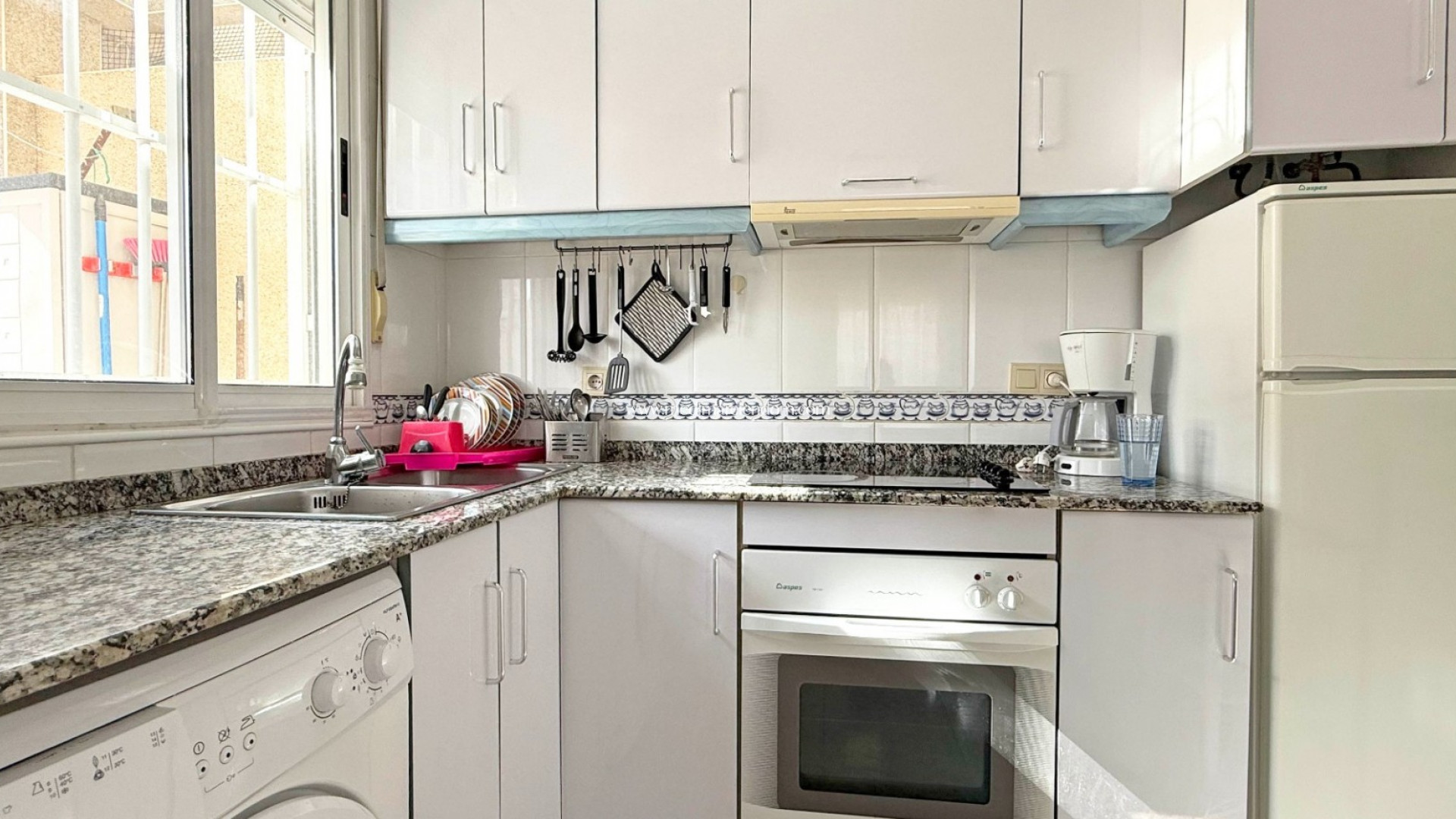 This charming second-floor penthouse apartment is perfectly located just 260 metres from the golden sands of Playa Los Locos in Torrevieja. Boasting two comfortable bedrooms, one bathroom, and a spacious wrap-around terrace, this home enjoys sunshine all day—ideal for relaxing or entertaining outdoors. The apartment comes fully furnished and features air conditioning for year-round comfort. With its unbeatable location close to the beach, restaurants, and all amenities, it’s a fantastic choice for a holiday home or investment on the Costa Blanca.