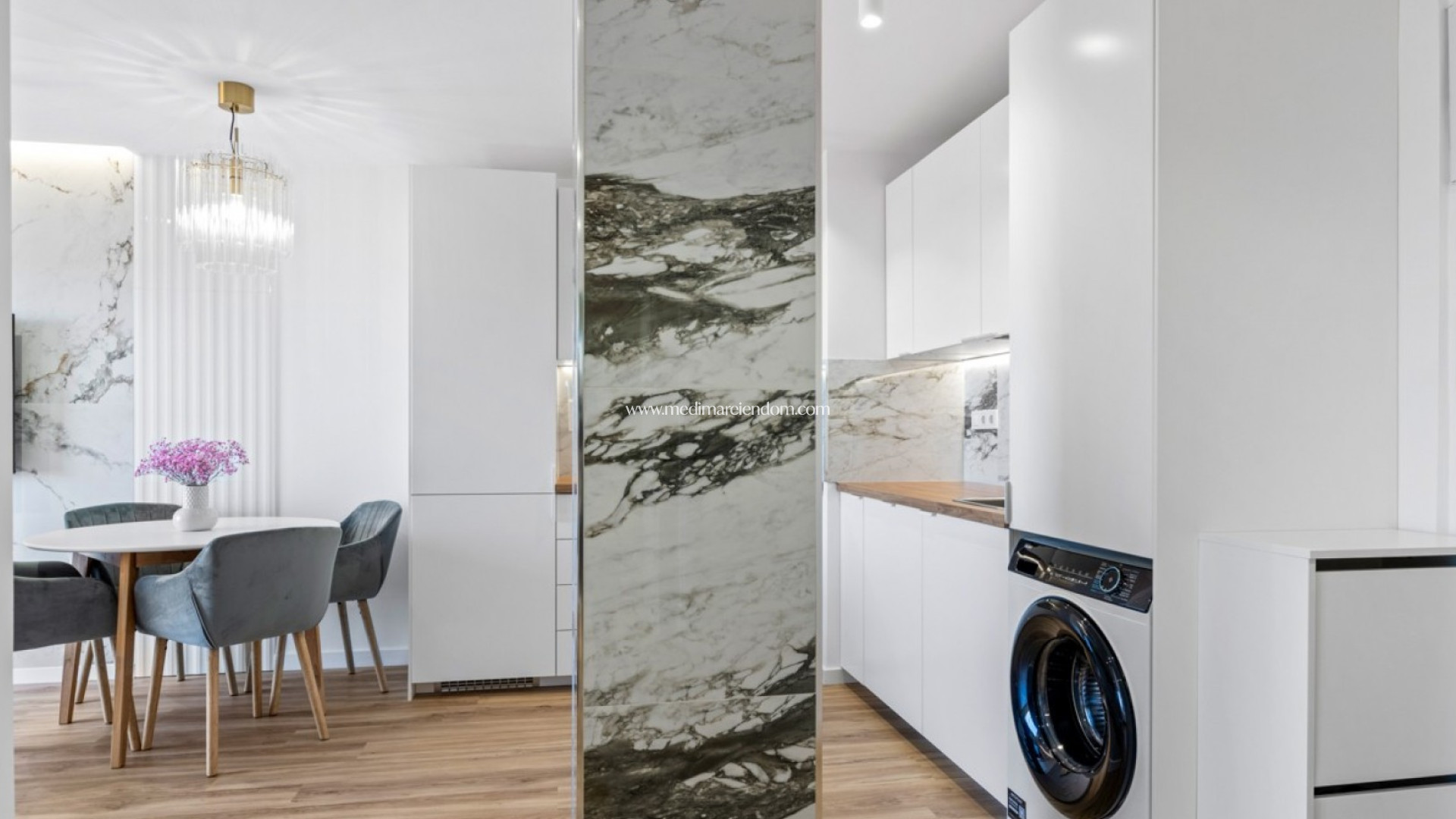 Welcome to this fully renovated, high-end apartment located in the sought-after area of Punta Prima, only 500 meters from the sea. This is a rare opportunity to own a property that offers truly breathtaking views—of the Mediterranean Sea, stunning sunrises and sunsets, and the illuminated town skyline at night.