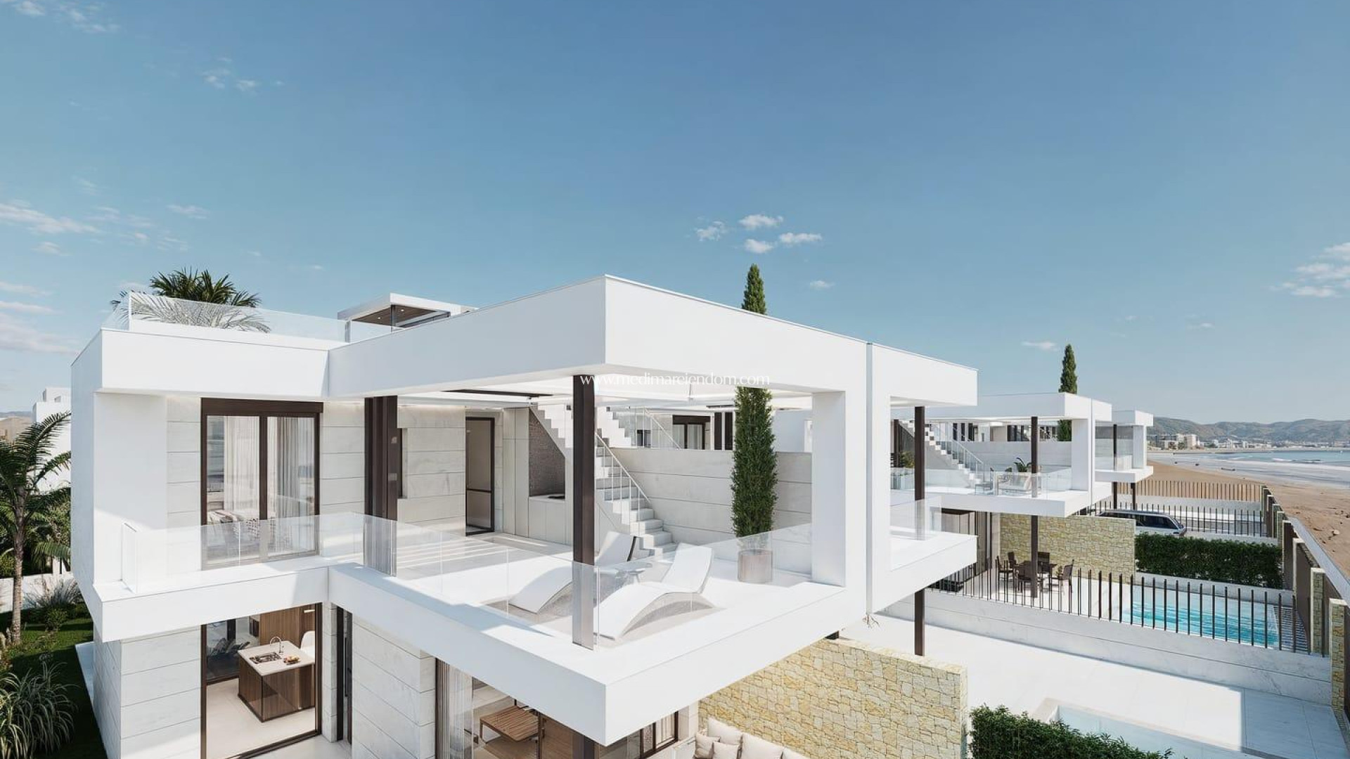Contemporary Villas Near the Beach and Golf in Los Alcázares, Costa Cálida Modern Living by the Sea and La Serena Golf Located in Los Alcázares, one of the most vibrant towns on the Costa Cálida, this exclusive new development features elegant semi-detached villas with 3 bedrooms and 3 bathrooms, spread over two floors and topped with a spacious rooftop solarium. Designed for modern Mediterranean living, these homes offer the perfect balance of comfort, style, and location. Just 700 meters from the beach, and within walking distance of La Serena Golf Course and the town centre, the villas are ideally situated to enjoy the best of the Mar Menor region. Optional private pool, summer kitchen and jacuzzi are available for an additional cost, allowing each homeowner to personalize their property and make the most of the region’s over 300 sunny days per year. High-Quality Construction and Sustainable Features Each villa is crafted with high-quality materials and energy-efficient features: Armoured front door with security lock Aluminium windows with thermal break, double glazing, and motorized blinds in bedrooms White resin shower trays with glass screens Bathroom furniture with mirrors included Pre-installed ducted air conditioning system Photovoltaic solar panels for energy self-consumption Automatic garden irrigation system These sustainable features not only reduce energy costs but also support a more eco-friendly lifestyle. Prime Location on the Costa Cálida Los Alcázares offers an unbeatable combination of sun, golf, and the sea, making it one of the most sought-after destinations for holiday homes and permanent living in Spain. Surrounded by world-class golf courses such as La Serena Golf and the renowned Mar Menor Golf Resort & Spa, the area is a haven for golf lovers. Distances to key points of interest: Murcia-Corvera Airport – 35 km Cartagena – 25 km Murcia city – 50 km Dos Mares Shopping Centre – 15 km Puerto Deportivo Los Alcázares – 2 km A Mediterranean Lifestyle to Enjoy Every Day Los Alcázares is a town where life is lived with joy. From beachside restaurants serving local delicacies like arroz caldero, to lively markets and scenic promenades, this community offers a rich cultural experience infused with the authentic Mediterranean spirit. Whether you're seeking a vacation retreat, a permanent residence, or a smart investment, these villas are your gateway to a new life on the Costa Cálida. Contact us now to discover your future home by the sea and golf in Los Alcázares.