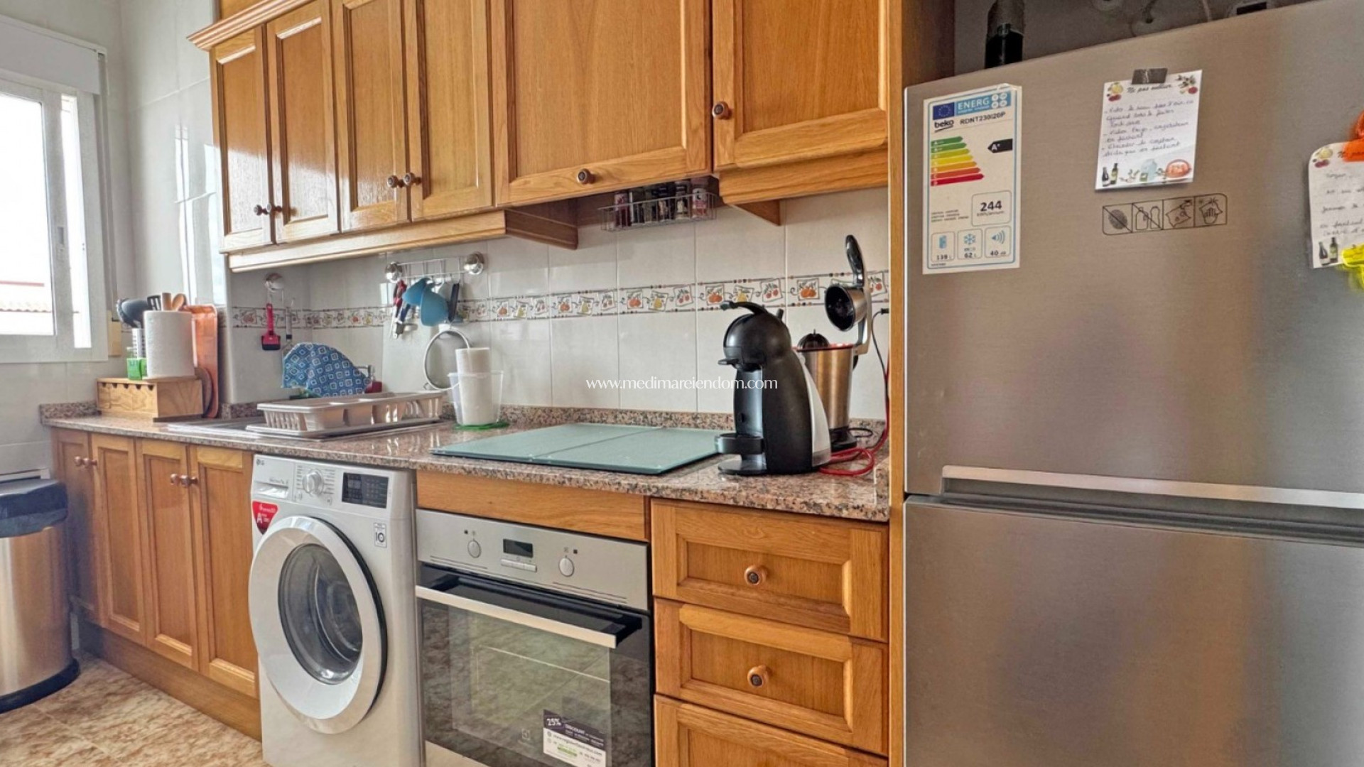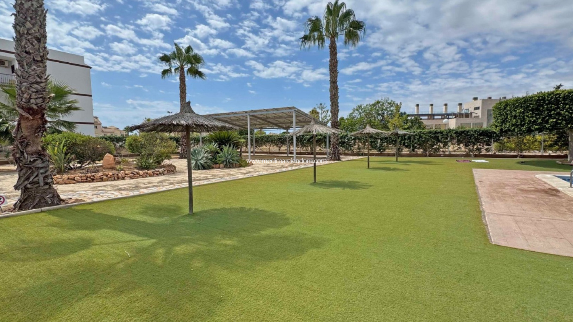 This well-maintained apartment offers an exceptional opportunity to enjoy coastal living just 900 meters from the Mediterranean in the popular area of Punta Prima, Orihuela Costa. Located on the second floor of a residential complex built in 2008, the property combines comfort, convenience, and investment potential. With a total built area of 97 m², the apartment features a bright and functional layout comprising: 2 double bedrooms with built-in wardrobes 2 full bathrooms, including one en-suite Open-plan living and dining area with natural light and direct access to a private balcony Modern, fully equipped kitchen Private rooftop solarium with panoramic sea views and a sun tent—ideal for sunbathing, dining, or relaxing outdoors Additional features include air conditioning, partly furnished interiors, and a private parking space within the community. Residents benefit from access to a communal swimming pool and a peaceful setting within a gated complex. The apartment is in excellent condition and ready to move into, with easy access for people with reduced mobility (no elevator, but exterior access is adapted). Situated in a quiet yet central area, all essential amenities are within walking distance—including supermarkets, restaurants, pharmacies, and bus connections. The beach and the Zenia Boulevard shopping centre are also just minutes away. This property is ideal as a permanent residence, a holiday home, or a high-yield rental investment, offering a low-maintenance lifestyle with sea views in one of the most desirable areas of the Costa Blanca.