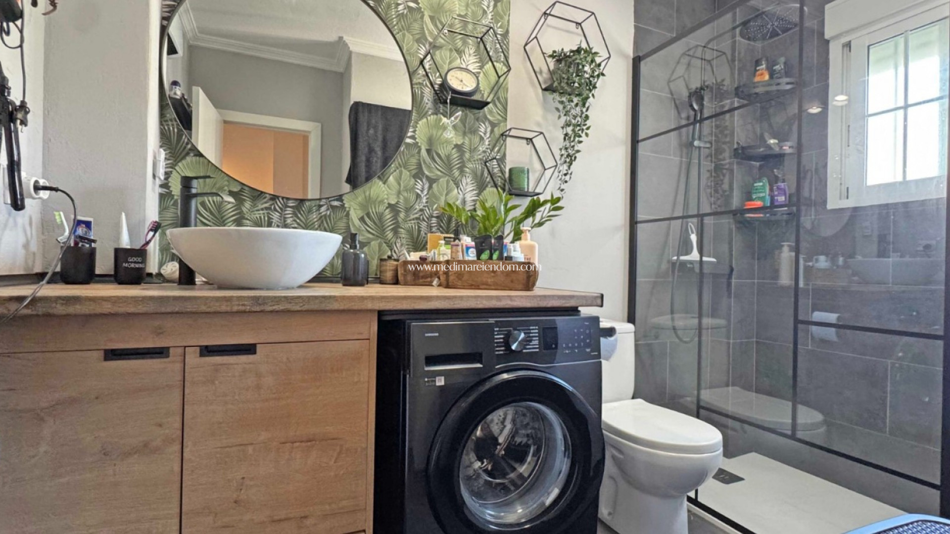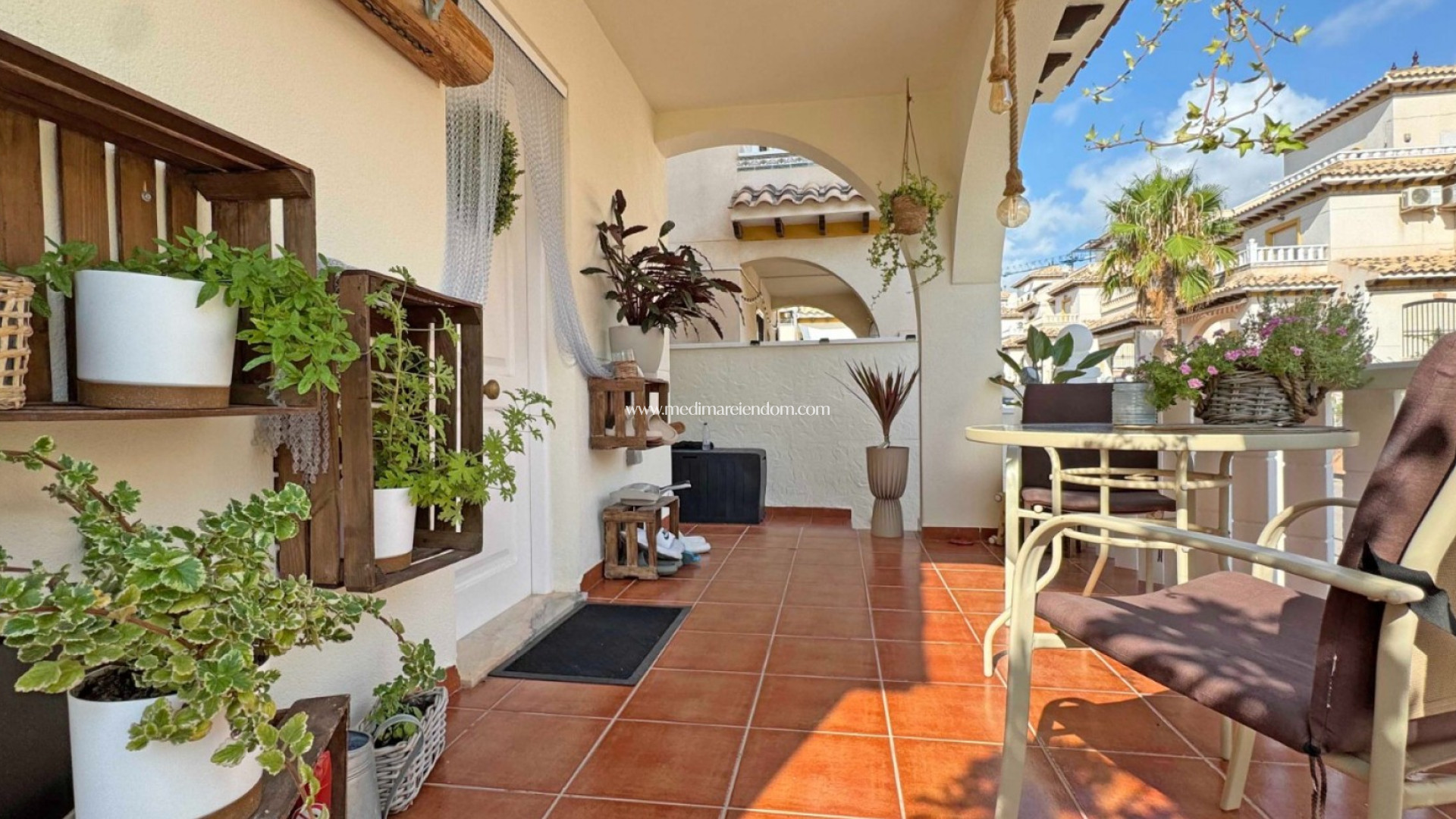 Discover this stylish and fully renovated townhouse in one of Orihuela Costa’s most desirable neighborhoods — Lomas de Cabo Roig. Set across a generous 100 m², this elegant home offers 2 spacious bedrooms and 2 modern bathrooms, ideal for both year-round living and holiday getaways. The interior has been thoughtfully upgraded with a bright, open-plan living-dining area and a custom-designed kitchen at the entrance, featuring sleek finishes, modern appliances, and excellent storage space. Step outside to a beautifully maintained terrace with dining area and a private jacuzzi spa zone — perfect for relaxing under the stars. The rooftop solarium with sea views is laid with artificial grass for added comfort, creating the ideal spot for sunbathing or entertaining guests. The quiet communal pool is only 100 meters away. The home offers a peaceful yet convenient lifestyle close to all essential services: La Zenia Boulevard – 2 km Restaurants and bars – 600 m Supermarkets – 500 m Beaches – 3 km Cabo Roig Strip – 2.7 km Key features: Air conditioning throughout Move-in ready Quiet residential street Well-maintained urbanisation Excellent rental potential This is a rare opportunity to acquire a high-quality home near the sea. Contact us today via phone or WhatsApp to schedule your private viewing.