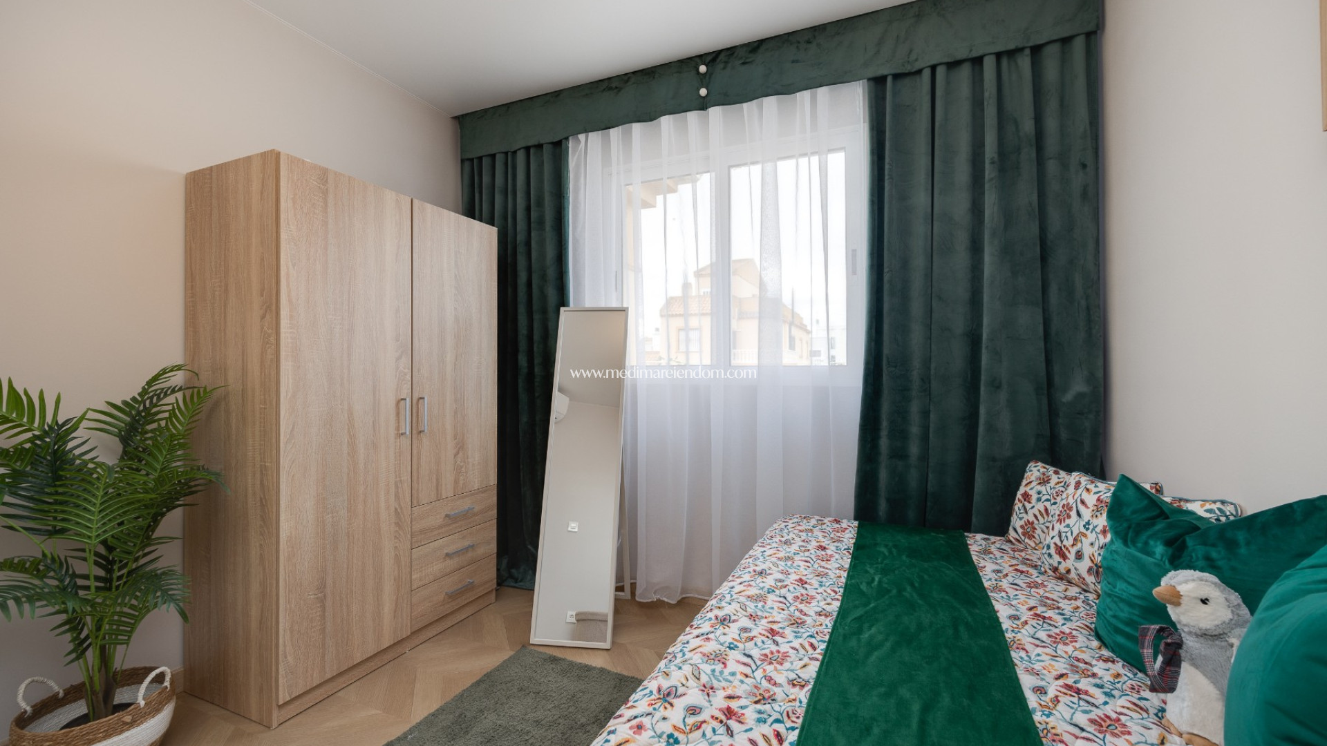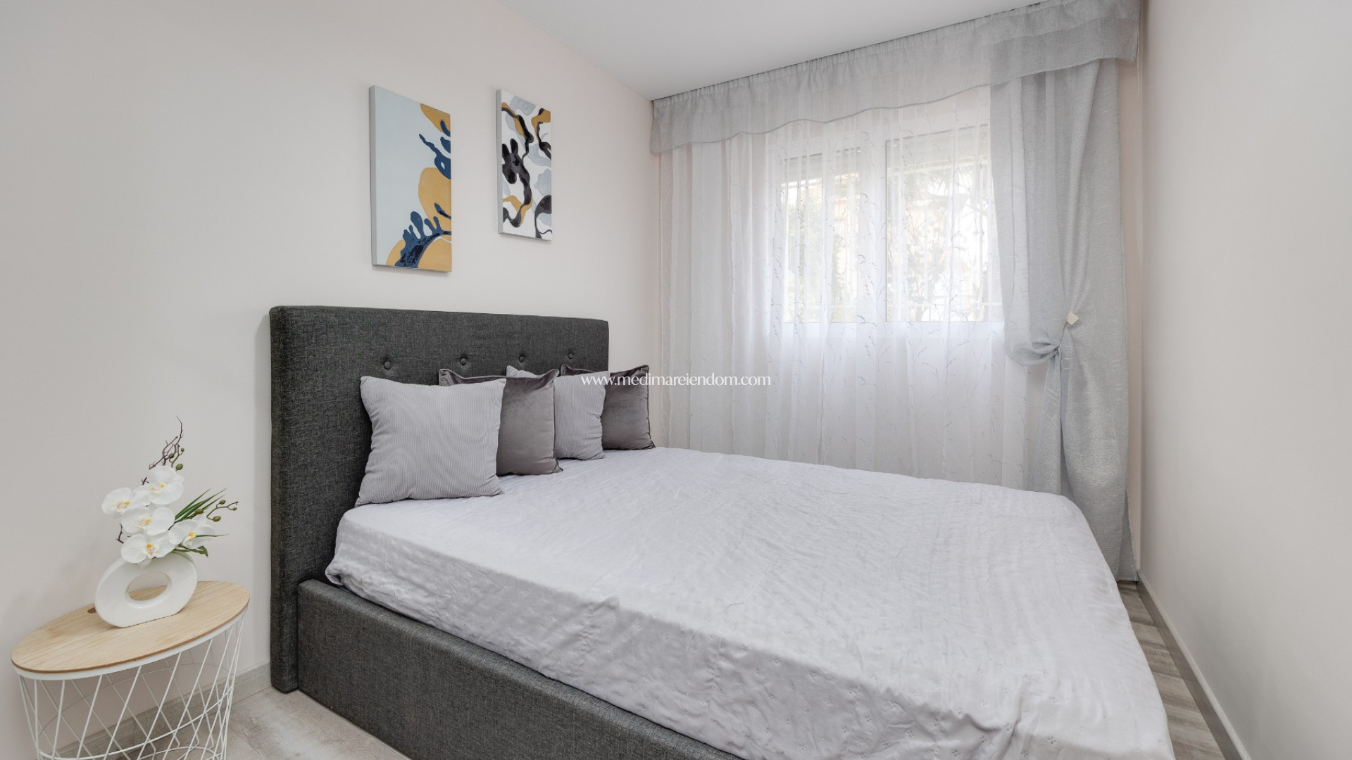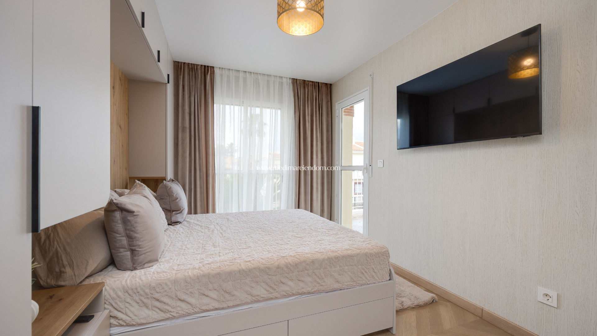 Here you live in a quiet and pleasant neighborhood with private parking and access to the community pool. Daily amenities such as shops and restaurants are only a five-minute walk away. Torrevieja and the beautiful beaches of Guardamar can be reached in less than ten minutes by car, and Alicante airport is about 35 minutes away.
