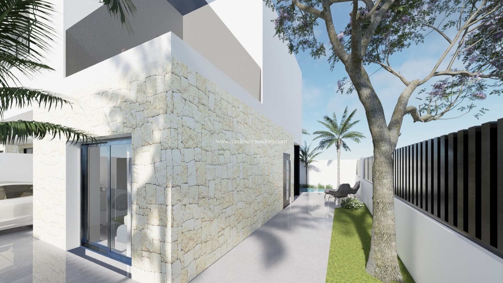 VILLAS DE OBRA NUEVA EN SAN PEDRO DEL PINATAR 2 villas de nueva construcción en San Pedro del Pinatar. Las villas modernas de nueva construcción tienen 3 dormitorios, 3 baños, cocina abierta con la zona de estar, armarios empotrados, jardín privado con la piscina y plaza de aparcamiento fuera de la carretera, solarium privado. Grandes ventanas en la sala de estar con acceso directo a la zona de la piscina. Villas bien situadas respecto a colegios, comercios, centros deportivos y transporte público. La ubicación privilegiada de San Pedro del Pinatar en el Mar Menor y la costa mediterránea atrae a aquellos con un interés en la navegación y los deportes acuáticos, proporcionando el amarre del puerto deportivo y los clubes de vela, mientras que las playas y los baños de barro naturales atraen a aquellos que buscan sol, mar y arena seguros. San Pedro del Pinatar cuenta con una comunidad consolidada y ofrece una excelente gama de actividades, incluyendo piscina cubierta e instalaciones deportivas, así como un programa de actividades sociales durante todo el año por el agradable clima invernal. Los beneficios de los baños de lodo, típicos de la región, o las tranquilas aguas del Mar Menor, han favorecido el crecimiento de Lo Pagán, que actualmente cuenta con todo tipo de comodidades. Además, cuenta con una excelente ubicación, a sólo 5 minutos del Centro Comercial Dos Mares. El aeropuerto de Murcia/Corvera está a 30 minutos y el de Alicante a una hora en coche.
