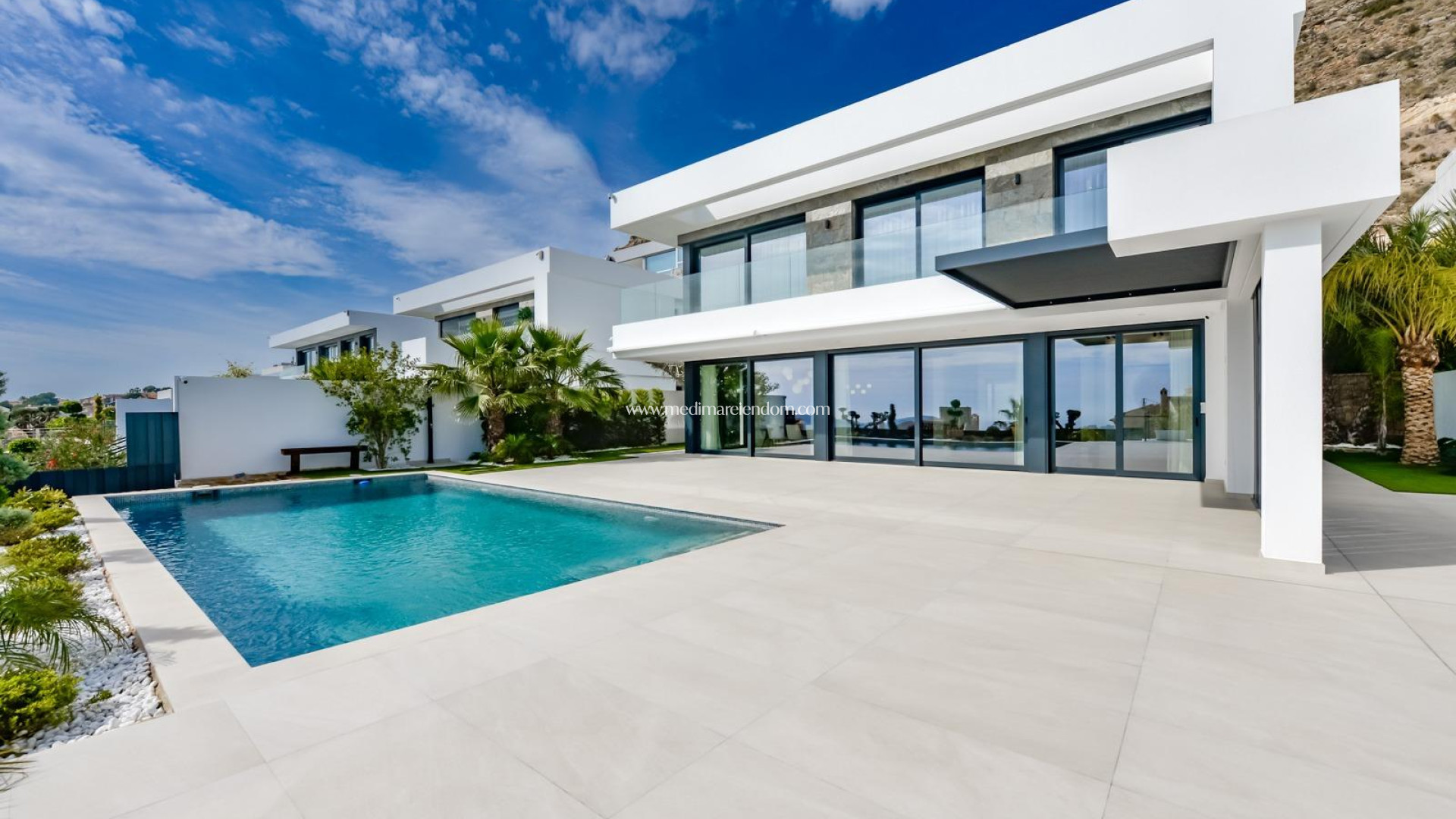 VILLA DE LUJO DE NUEVA CONSTRUCCIÓN EN FINESTRAT Villa moderna de nueva construcción en Finestrat con vistas al mar. Excelente ubicación con grandes privilegios por estar en una urbanización tranquila de Sierra Cortina pero muy cerca de todos los servicios y comercios, así como de la playa. Diseño y líneas modernas con las últimas tecnologías y materiales. Villa construido sobre la parcela de 704 m2, dispone de 4 dormitorios, 4 baños, cocina americana totalmente equipada con isla, salón con acceso directo a la terraza con la piscina, jardín totalmente terminado con riego automático, ascensor en el interior de la vivienda, armarios empotrados, suelo radiante, persianas eléctricas, luces exteriores e interiores marca Siemens, techos altos hasta 3.. 20 m de altura, sótano con patio inglés, calefacción por aerotermia, puerta de entrada Iroco, garaje para 4 vehículos con puertas automáticas de 128m2 con techos de 5m, fachada acabada en piedra natural, puertas interiores con una altura de 2,40 m. Villa situada en el complejo Sierra Cortina, junto a dos campos de golf, parques temáticos, un gran centro comercial y a pocos minutos de las playas de Benidorm. Finestrat situado en la comarca de la Marina Baixa de la Costa Blanca, cerca de la vecina Benidorm y a unos 40 kilómetros de la ciudad de Alicante y del aeropuerto internacional. El pueblo está situado en la ladera del Puig Campana y ofrece hermosas vistas de las montañas, la costa y el mar Mediterráneo.