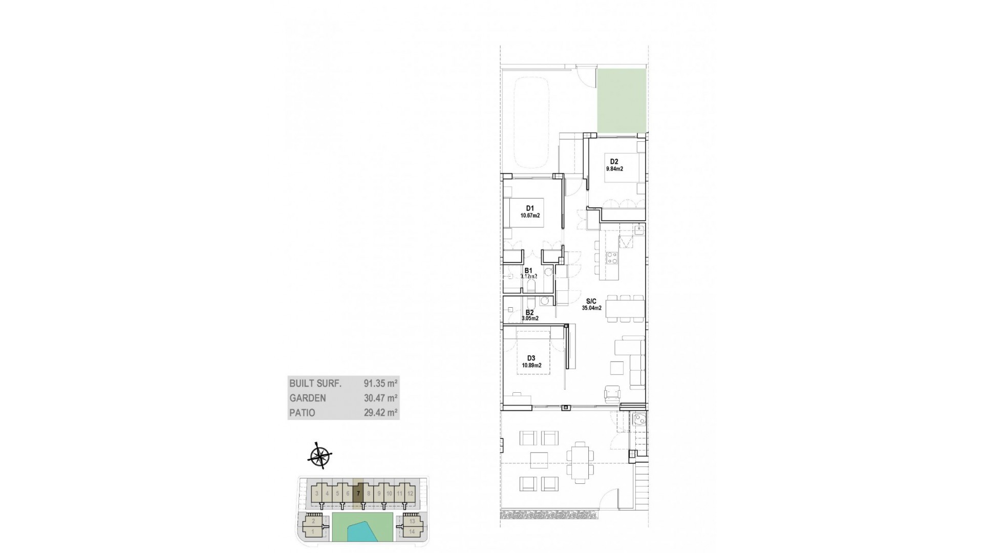 BUNGALOW DE OBRA NUEVA EN MAR DE CRISTAL Complejo residencial de obra nueva de hermosos y modernos apartamentos tipo bungalow de 3 dormitorios en Mar de Cristal. Residencial ubicado a tan solo 400m de la playa. El bungalow de la planta baja tiene una amplia terraza ajardinada equipada con un lavadero. El bungalow de la planta superior tiene un gran solárium, con una cocina al aire libre. Tiene zona comunitaria ajardinada con piscina. La Playa de Mar de Cristal es una de las playas de Cartagena, situada en la provincia de Murcia. Esta playa cuenta con las siguientes comodidades, restaurante de playa, vestuarios, duchas, baños. Durante la temporada, esta línea de playa está supervisada por un socorrista. El aeropuerto de Murcia-Corvera está a 30 minutos en coche.
