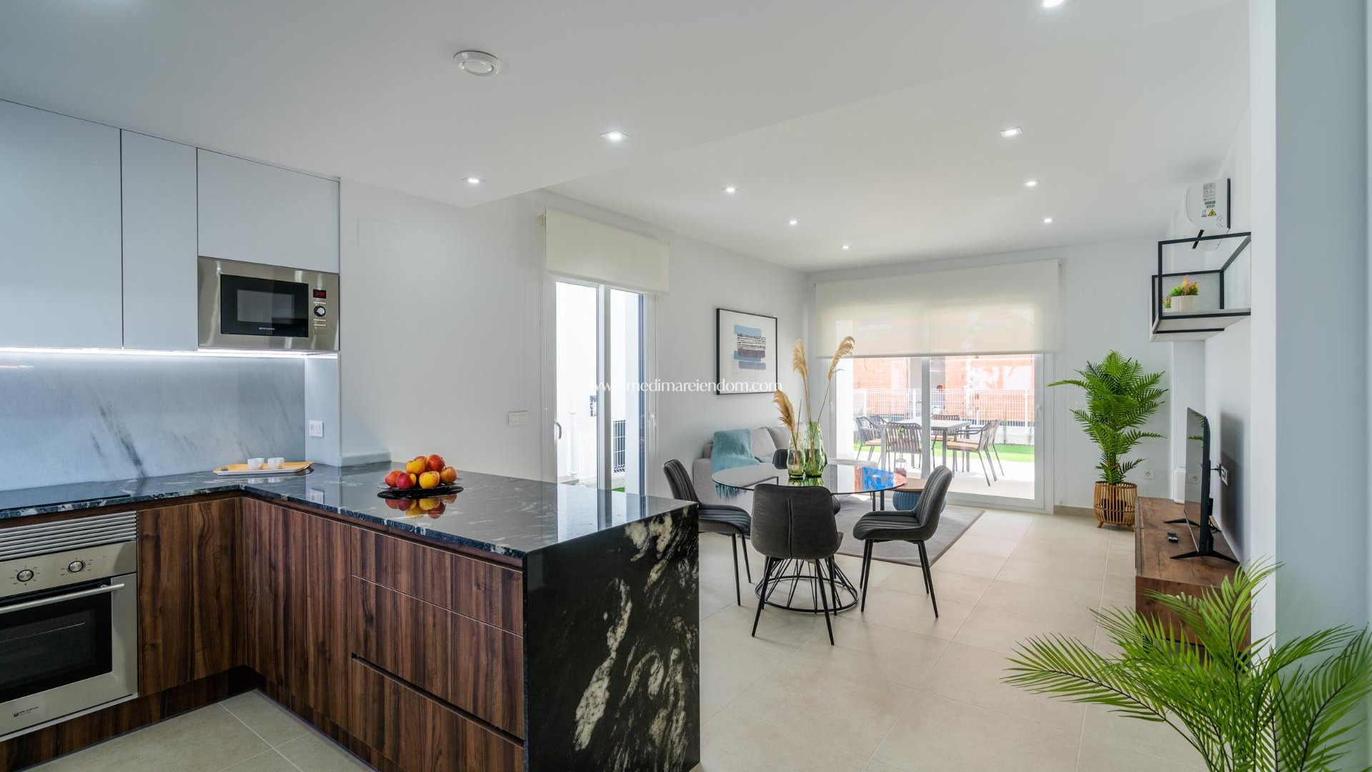 RESIDENCIAL DE OBRA NUEVA DE BUNGALOWS EN VISTABELLA Residencial de obra nueva de bungalows de diseño moderno en Vistabella. Bungalows de planta baja con jardín privado y bungalows de planta alta con solarium privado. Todos los bungalows disponen de 2 dormitorios, 2 baños, cocina americana con el salón, armario empotrado, plaza de garaje. El residencial cuenta con jardines comunitarios bellamente diseñados con una preciosa piscina comunitaria. Estos preciosos y espaciosos apartamentos están siendo construidos con productos y materiales de primera calidad. En Vistabella Golf hay espacio para todos. El campo está diseñado para que cada jugador pueda disfrutarlo de principio a fin. Sus calles onduladas, sus bunkers estratégicos o sus lagos son algunas de las características que lo convierten en uno de los diseños más atractivos de la zona, donde cada golpe es un reto y un placer para los sentidos. Los 18 Hoyos de Vistabella Golf, de par 72 y más de 6.000 metros de longitud han sido diseñados siguiendo las pautas de los campos modernos con 4 tees de gran amplitud en cada hoyo, amplias calles y bunkers elevados. La casa club de Vistabella Golf y su restaurante, así como los bares y tiendas locales, se encuentran a 5 minutos a pie. El concurrido pueblo de San Miguel de Salinas y Los Montesinos están a 5 minutos en coche y las encantadoras playas de bandera azul de Guardamar están a sólo 15 minutos en coche. El aeropuerto de Alicante está a 35 minutos y el nuevo aeropuerto de Corvera Murcia está a 45 minutos.