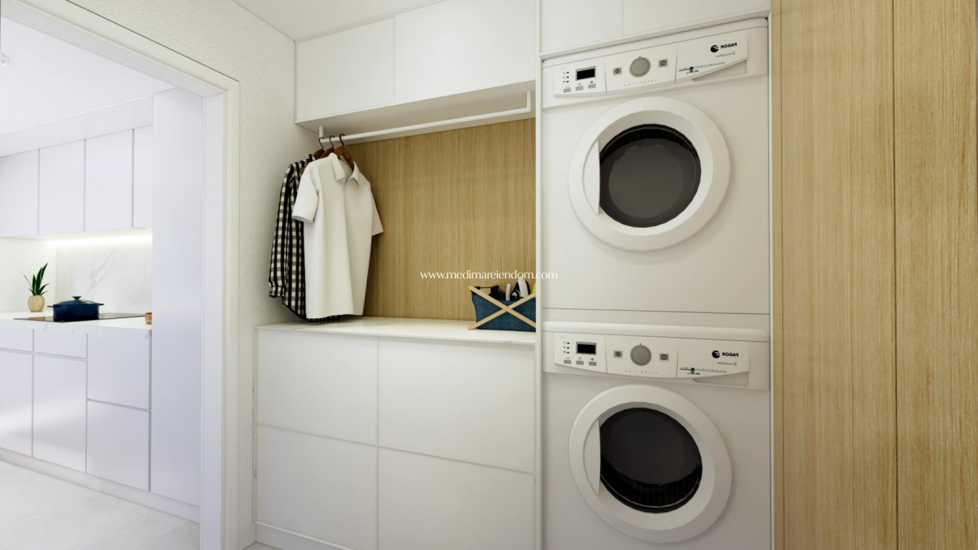 RESIDENCIAL DE OBRA NUEVA DE BUNGALOWS EN PILAR DE LA HORADADA Exclusivo residencial de obra nueva de 20 modernos bungalows en Pilar de la Horadada. Puedes elegir bungalows de 2 o 3 dormitorios con 2 baños. Las viviendas de la planta baja tienen amplias terrazas delanteras y traseras y acceso directo a la piscina y jardín comunitarios. Las viviendas de la planta superior tienen un gran solarium en la azotea. El espacio de vida consiste en un gran salón / comedor de planta abierta y cocina totalmente equipada con grandes puertas correderas que incorporan el espacio exterior. Los dormitorios tienen mucho espacio, un armario empotrado y el principal tiene un gran cuarto de baño con una ducha a ras de suelo. Los cuartos de baño están totalmente amueblados y equipados con mamparas de ducha, armarios y espejos con una agradable iluminación LED y de espejo de bajo nivel y calefacción por suelo radiante. Todas las viviendas disponen de una plaza de aparcamiento privada. Pilar de la Horadada es un típico pueblo español en la parte más meridional de la Costa Blanca. La gran calle principal tiene supermercados, muchas tiendas, restaurantes y bares y algunas plazas encantadoras. Las hermosas playas de Torre de la Horadada y Mil Palmeras con arena fina y paseo marítimo está a sólo 5 minutos. Los aeropuertos de Corvera (Murcia) y Alicante están a 40 y 55 minutos respectivamente
